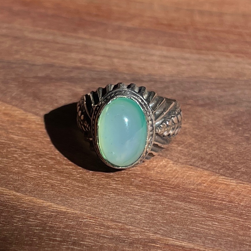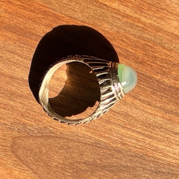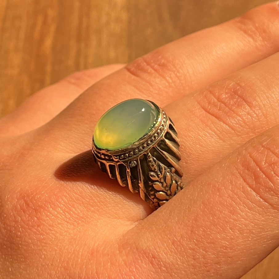 انگشتر عقیق با رنگ سبز کاهویی بسیار اصیل