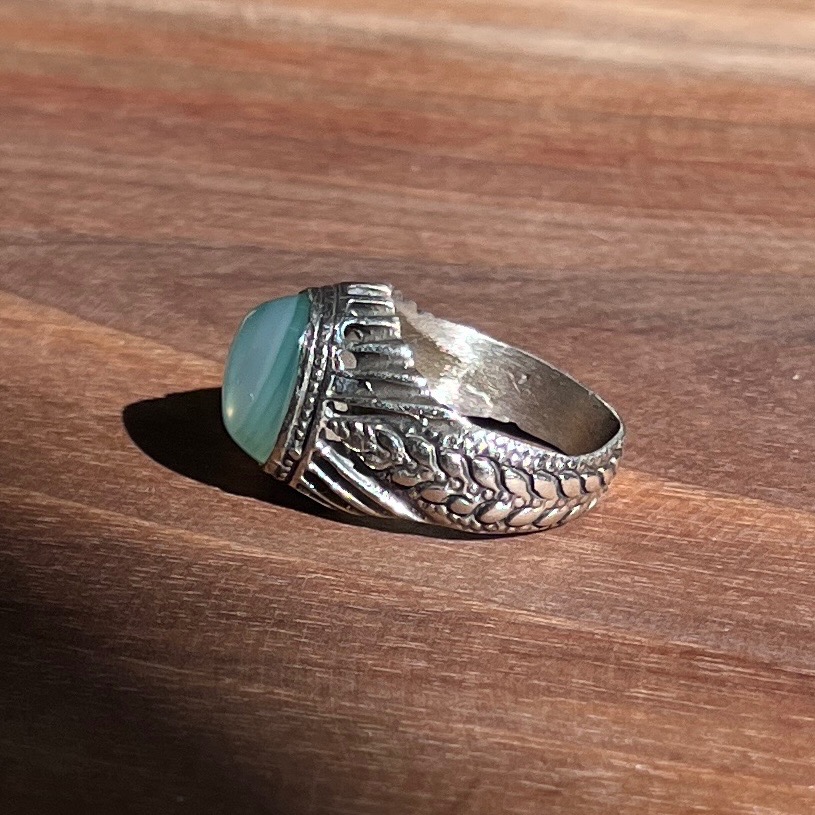 انگشتر نقره قدیمی عقیق سبز کاهویی کد 10