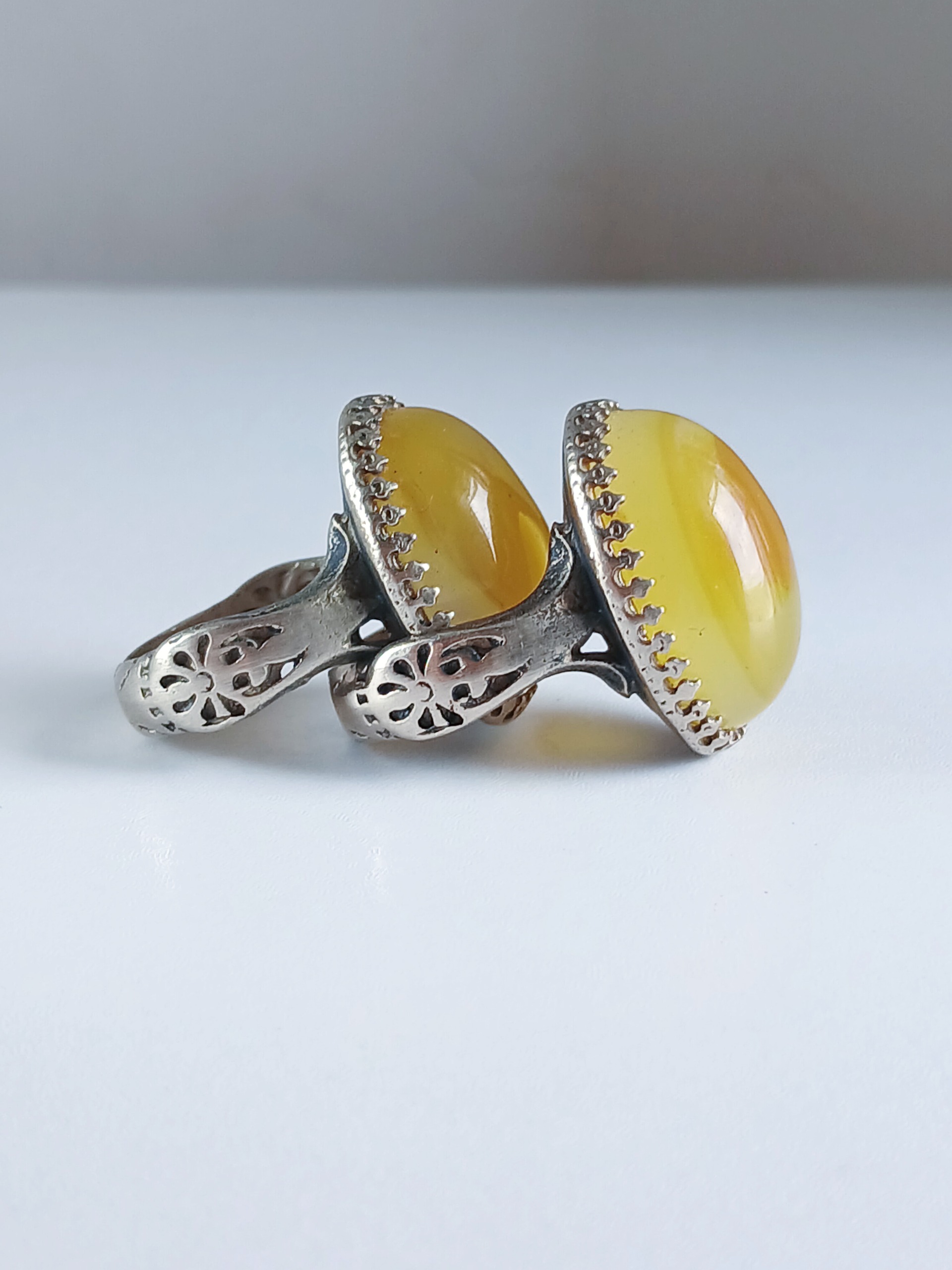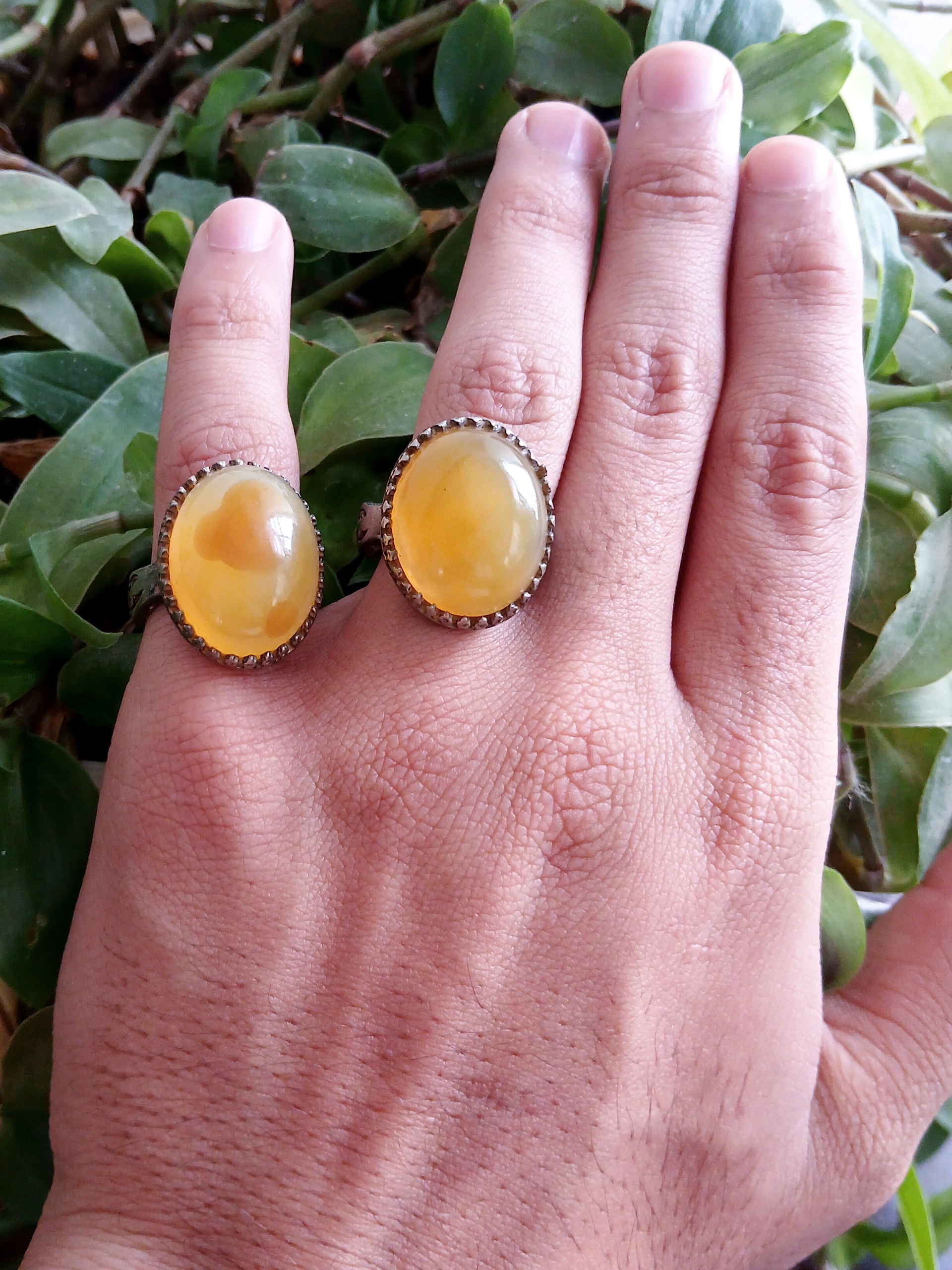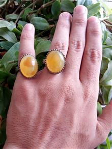 جفت انگشتر عقیق زرد حنایی آبدار