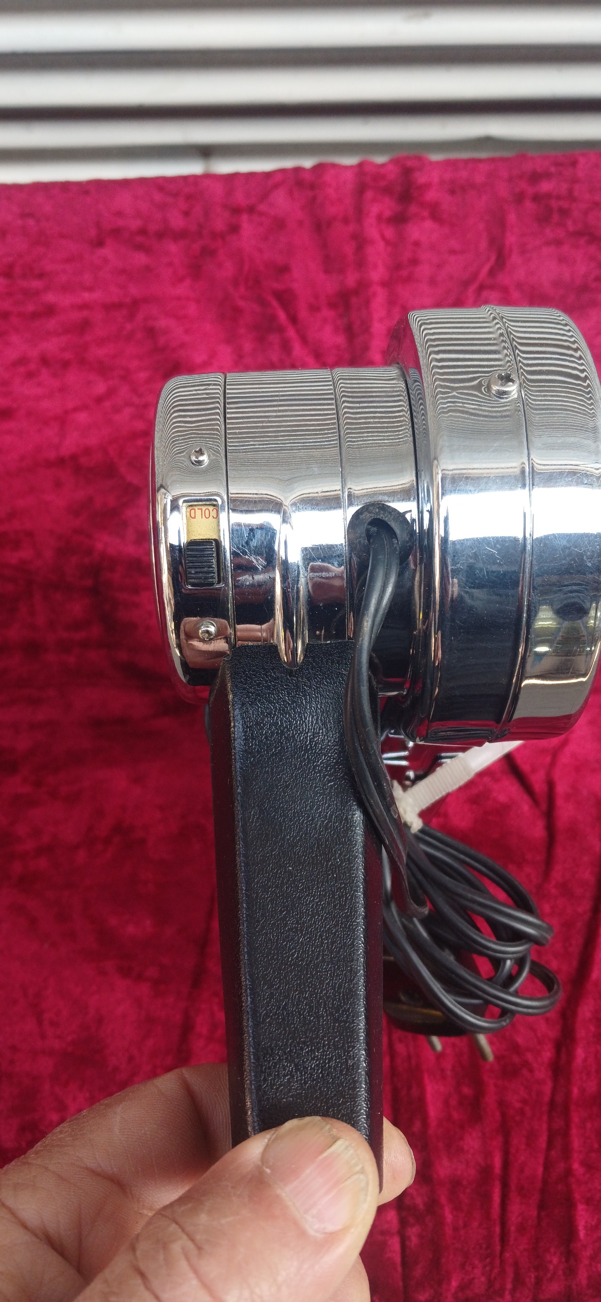 سشوار برقی قدیمی مال زمان پهلوی سالم و بدون ایراد قابل استفاده ساخت کشور ژاپن با دسته تا شو(طرح ابتکاری) خیلی تمیز مونده مرتب با کیف فابریک و سالم،در حد نو.