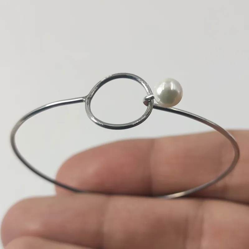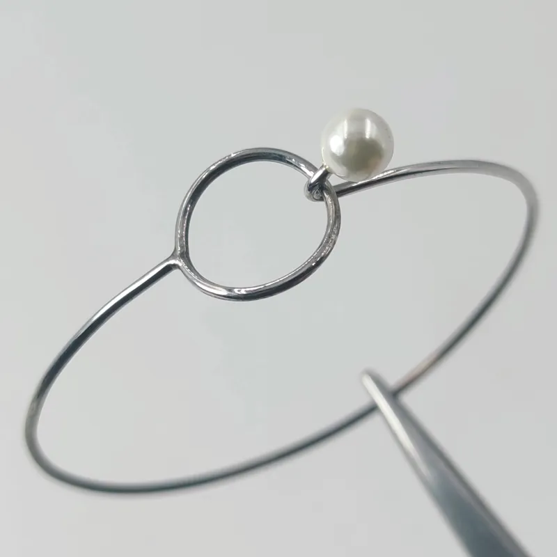 النگو دستبندی (بنگل) زنانه نقره و مروارید مصنوعی