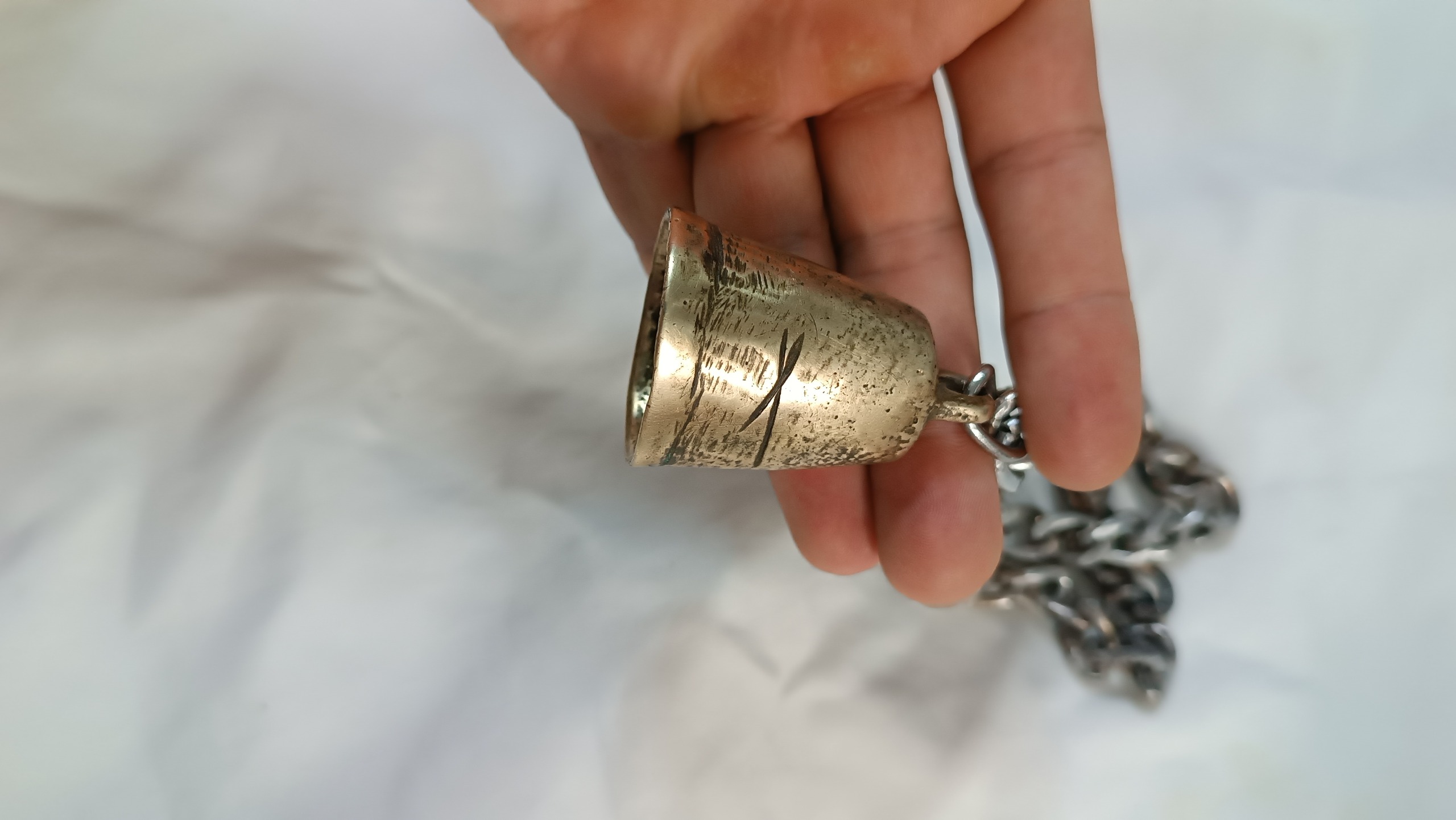 زنگوله برنجی قدیمی همراه زنجیر