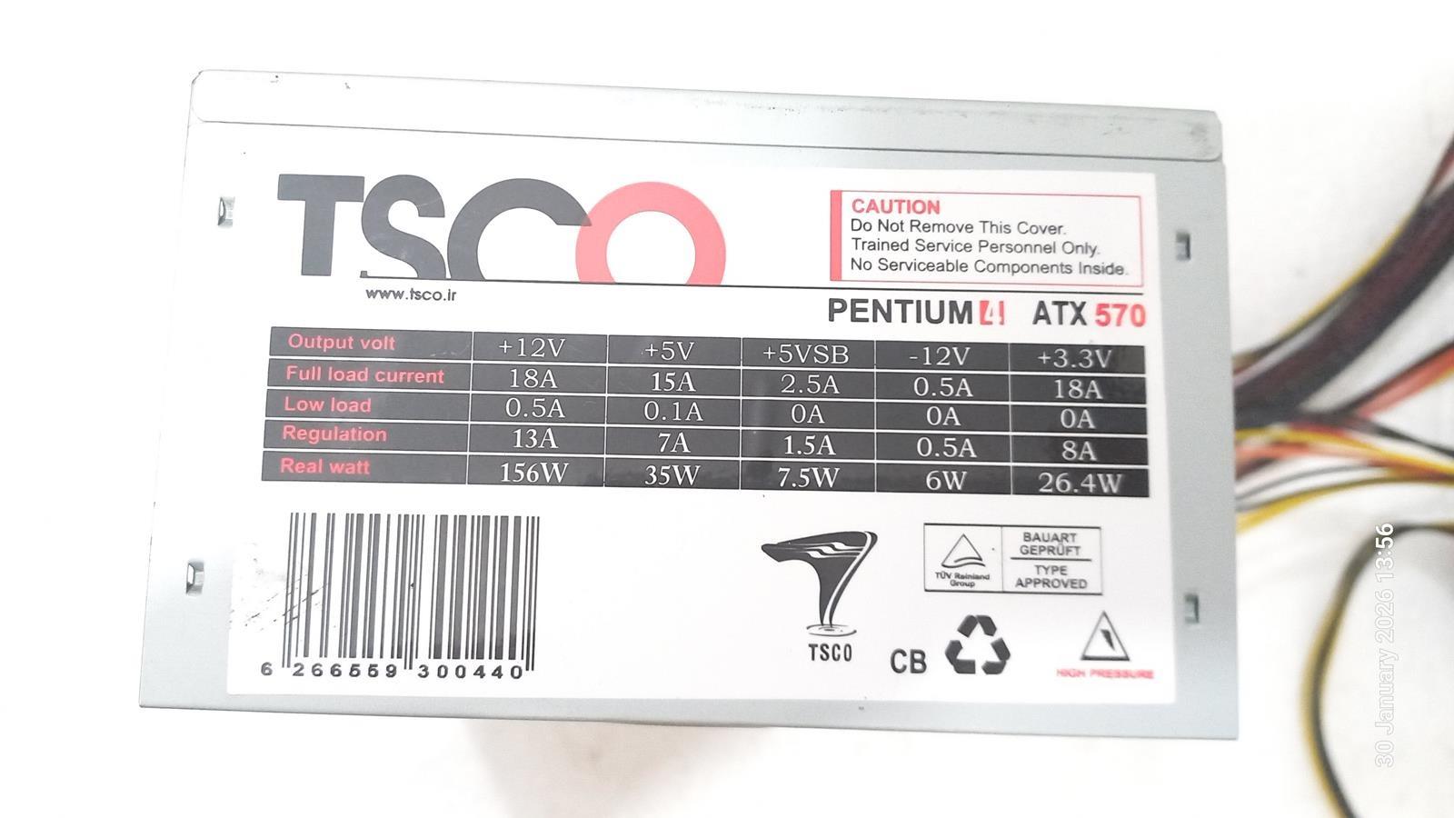 پاور TSCo ATX570 یک پاور 24 پین فن بزرگ میباشد که دارای 2 رابط برق IDE و 4 عدد ساتا است.