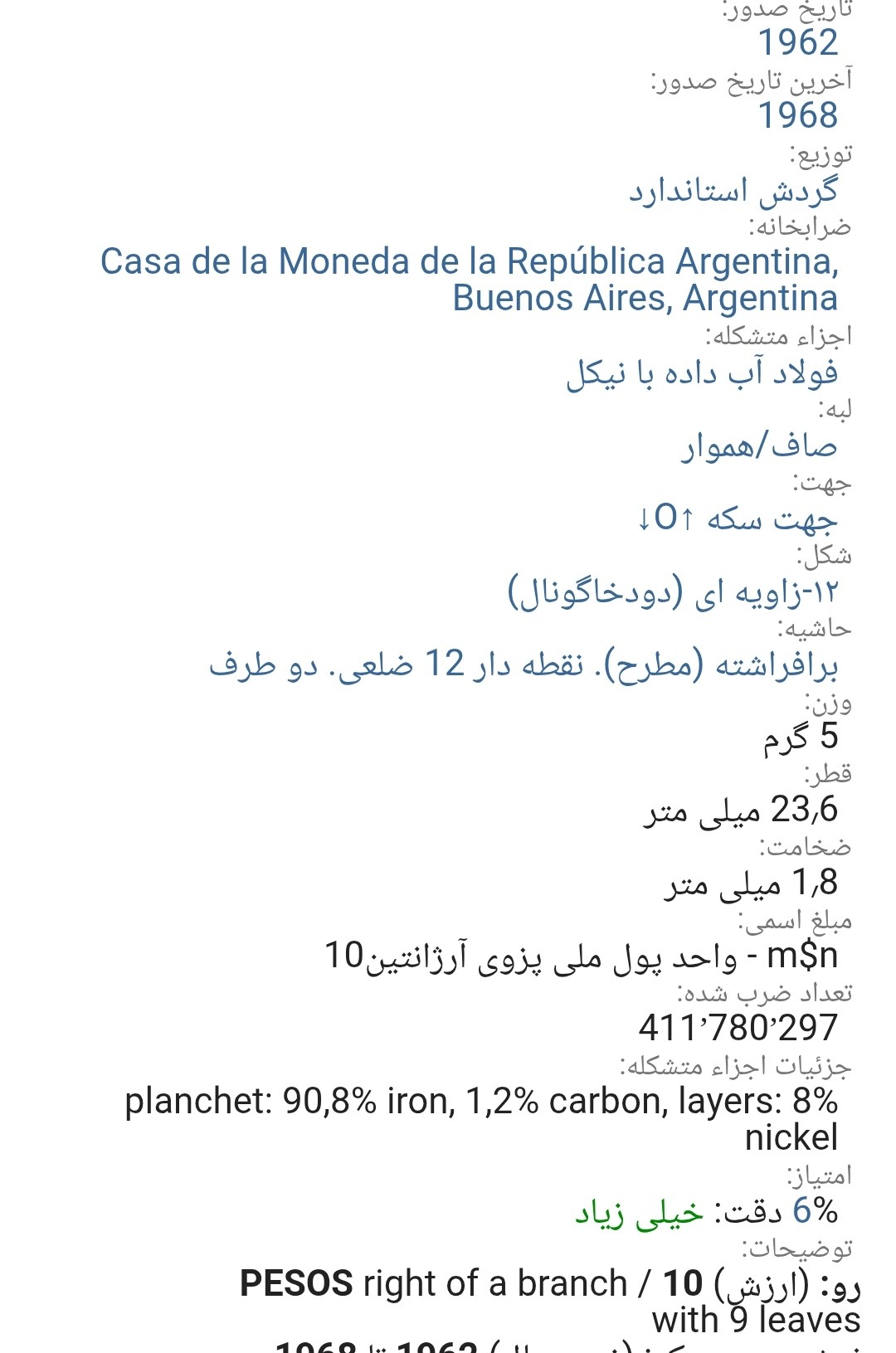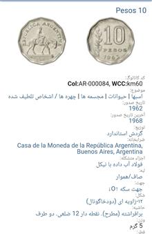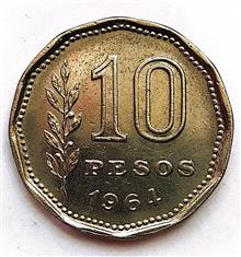 سکه 10 پزو آرژانتین 1964(کد1050)