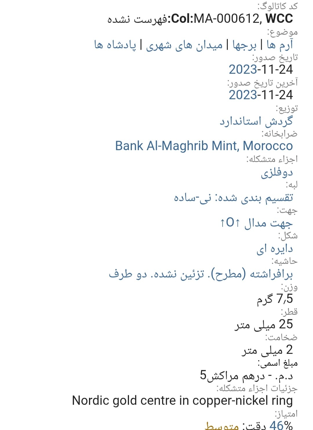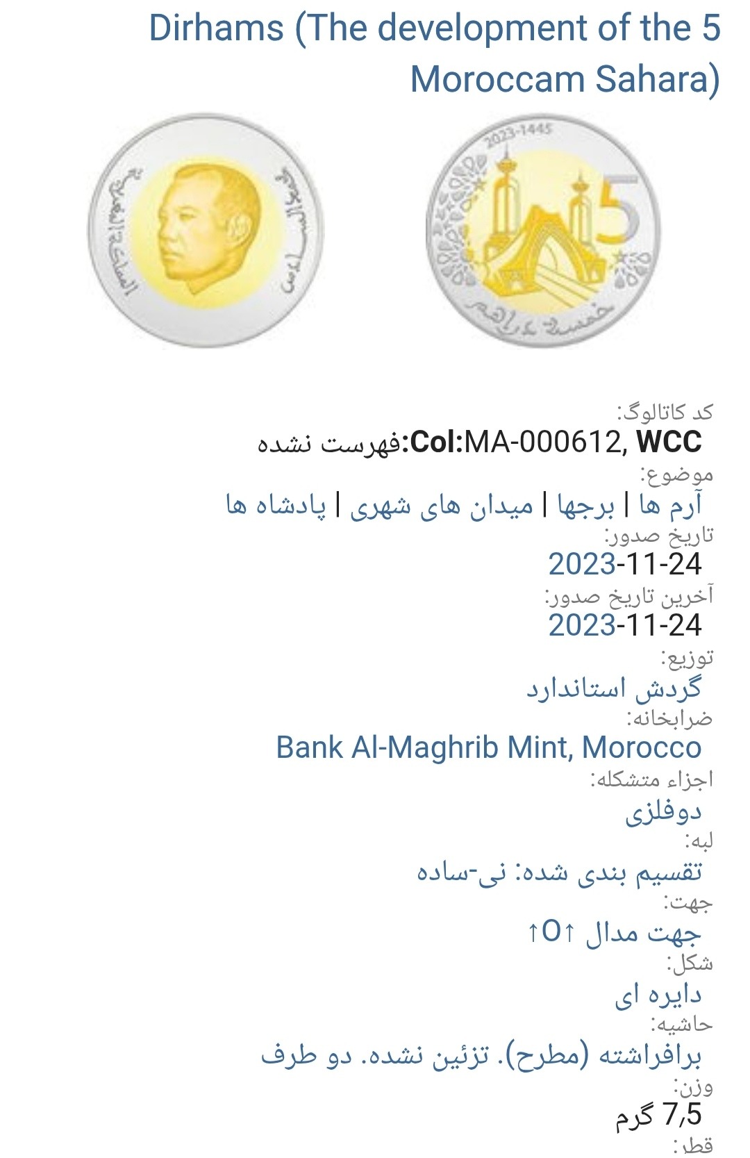 سکه 5 درهم مراکش نایاب 2023(کد1050)