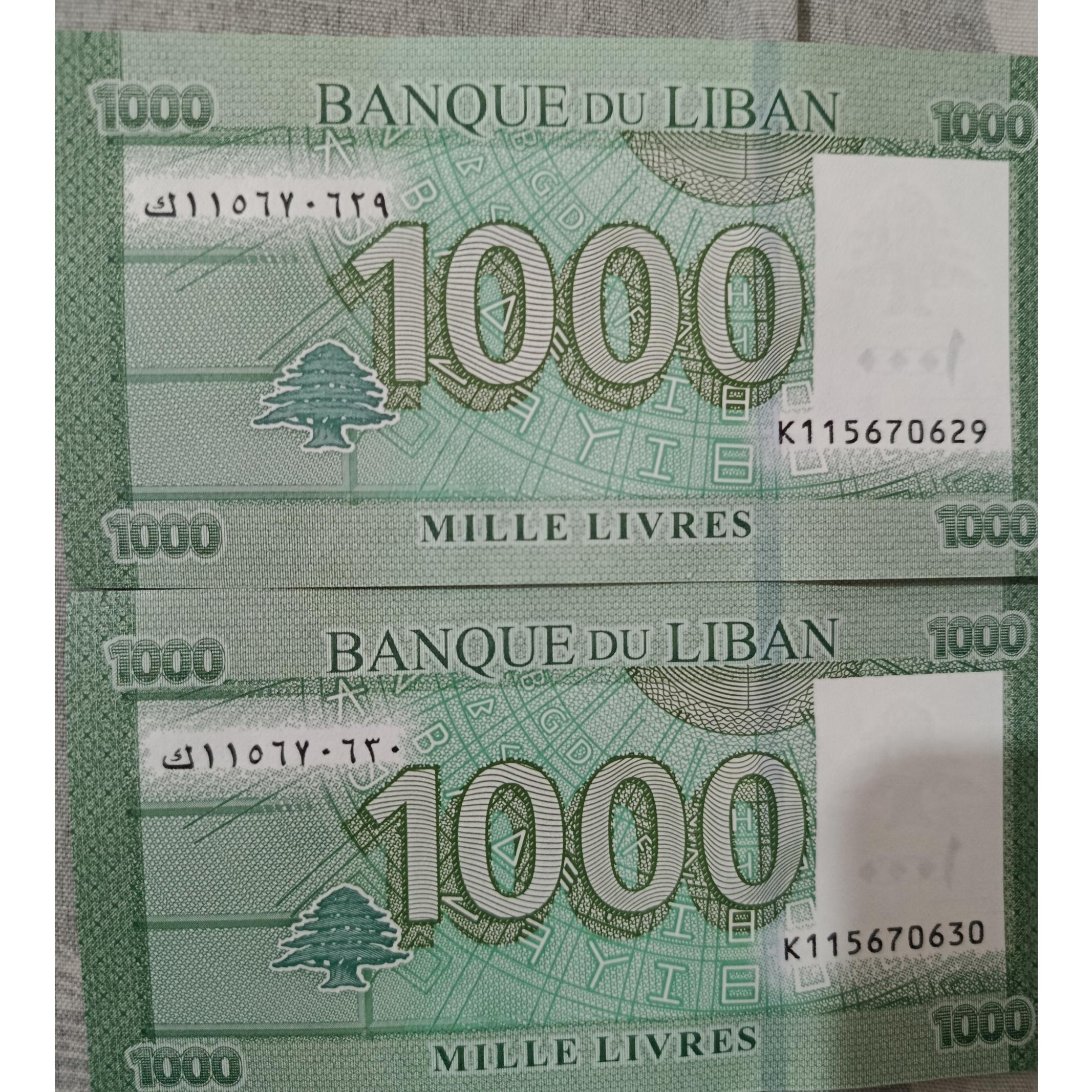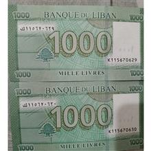 جفت اسکناس 1000 لیره رایج کشور لبنان