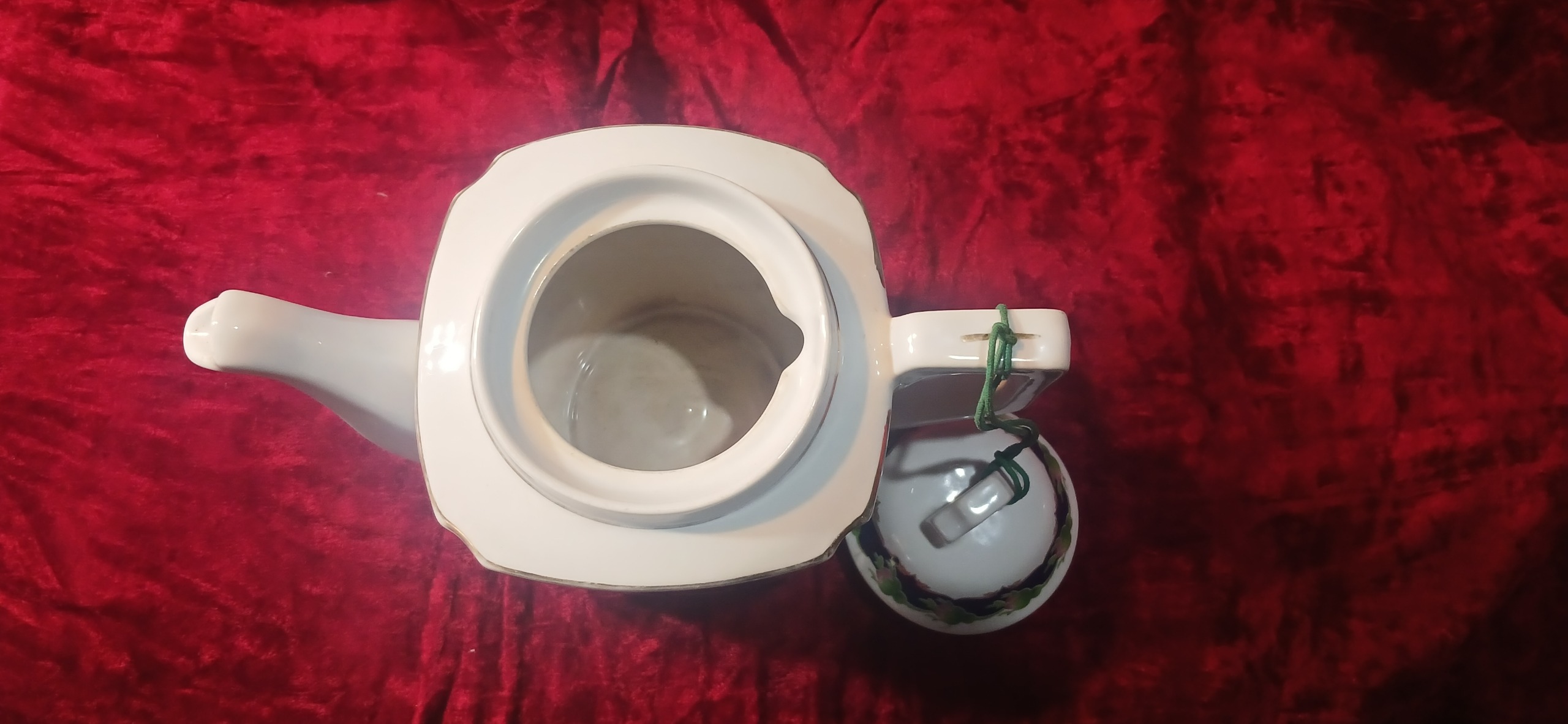 قوری چینی قدیمی سالم و بدون ایراد قابل استفاده خیلی تمیز و مرتب مونده،لازم به توضیح است که کف قوری دایره بوده و پیرامون آن تقریبا چهار گوش بوده و حالت مربع مانند میباشد.