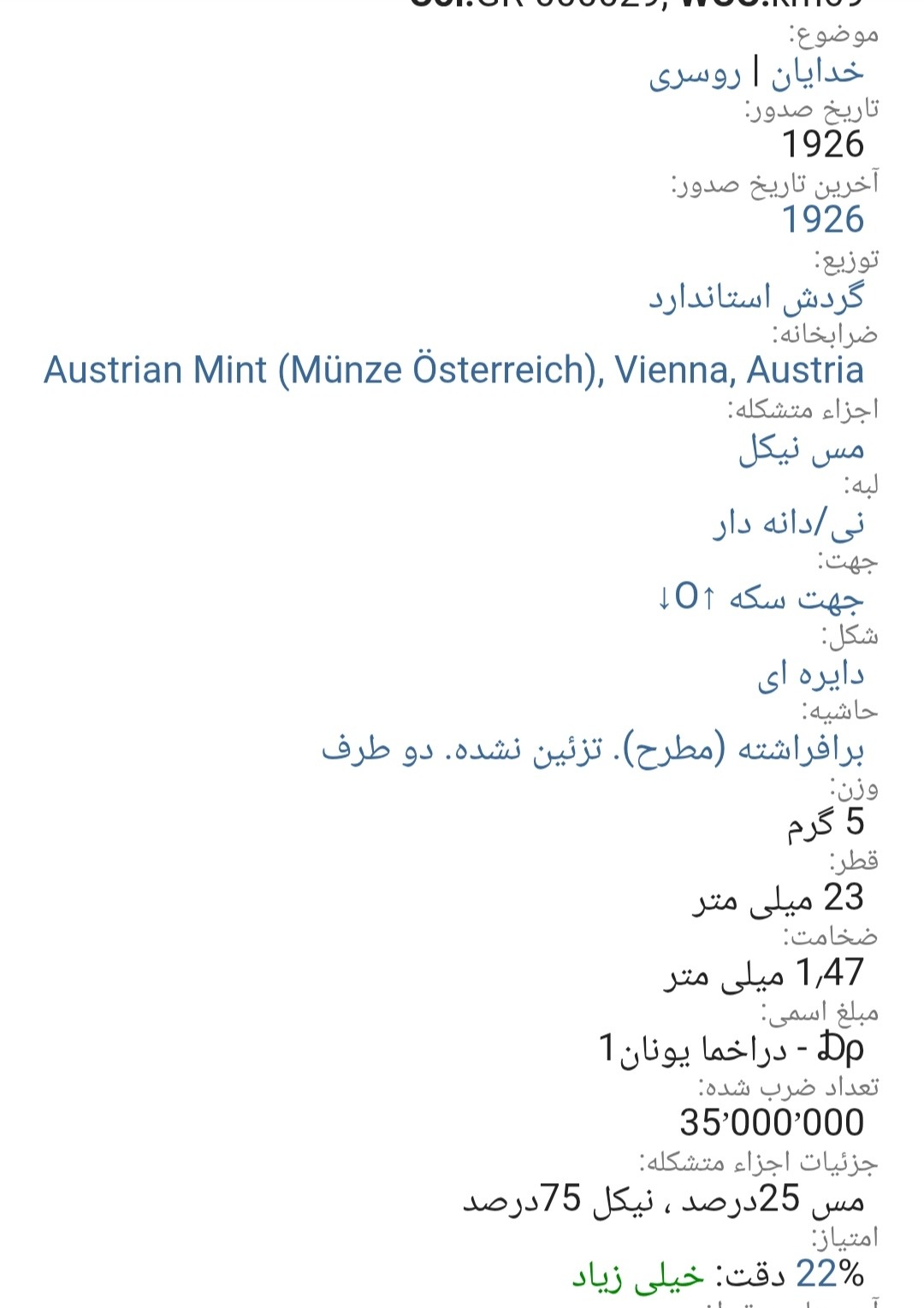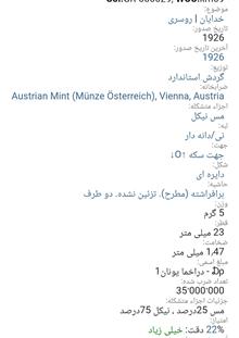 اسکن خود سکه می باشد از بعضی سکه تعداد هست برای انتخاب دوستان به صورت جداگانه در فروشگاه چیده شد تصاویراسکن ارائه شده از کالا ملاک خرید قرار دهید  در تصاویر دوم سوم چهارم توضیحات کامل هست از ابعاد وزن  قطر کالادر خرید خود دقت کنید