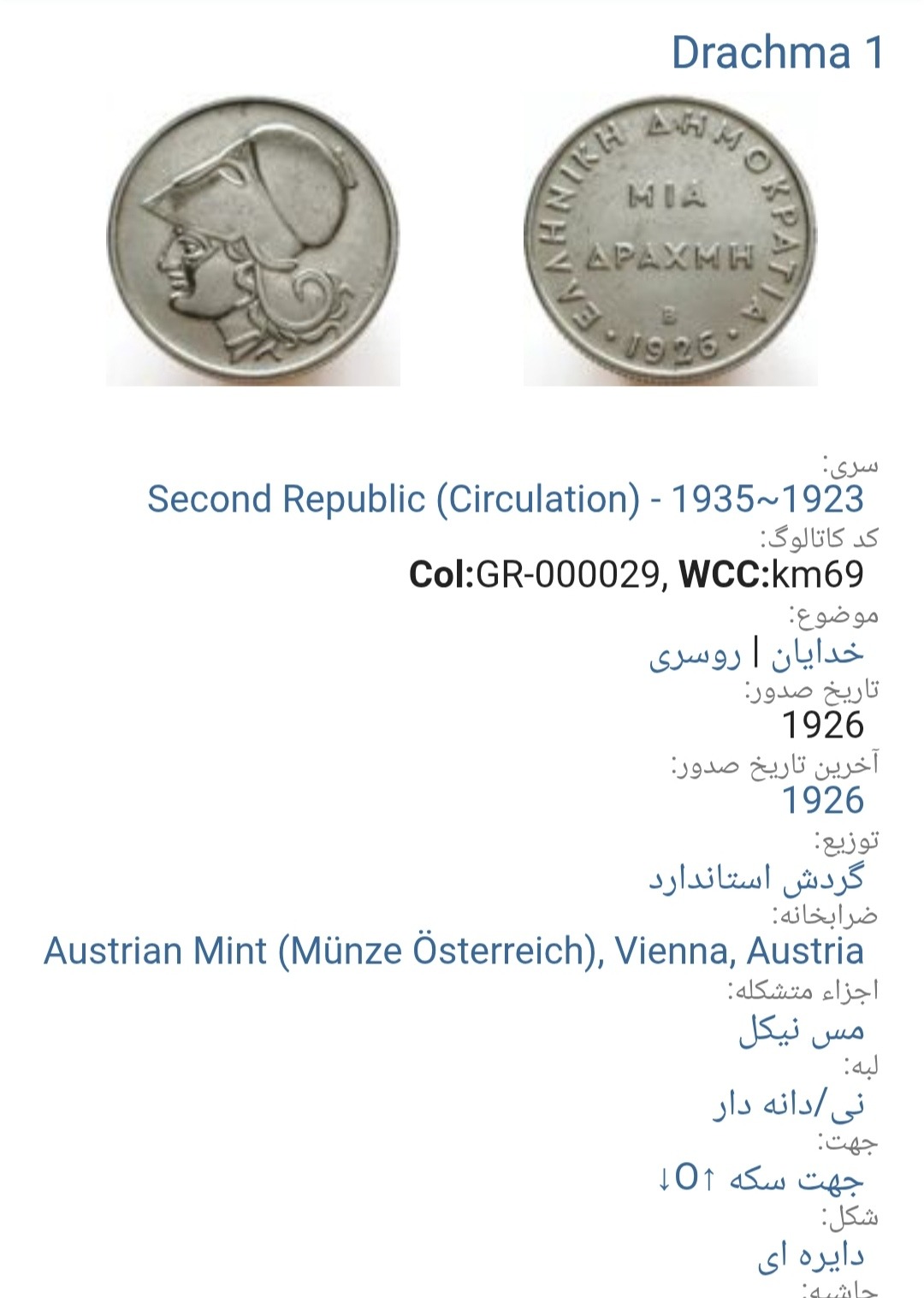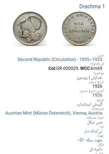 سکه 1 دراخمایونان نایاب 1926(3302)