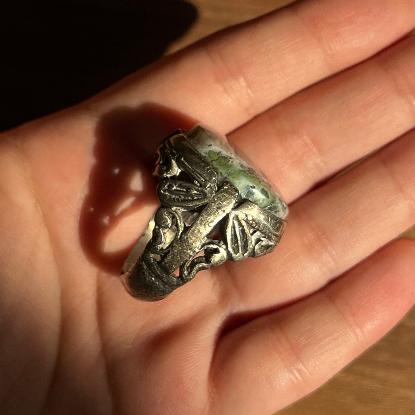انگشتر قدیمی با سنگ چند رنگ و با اصالت