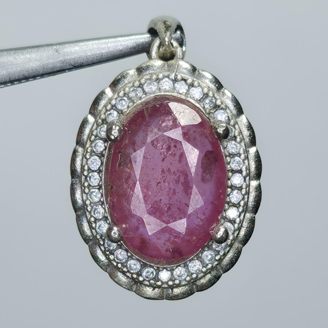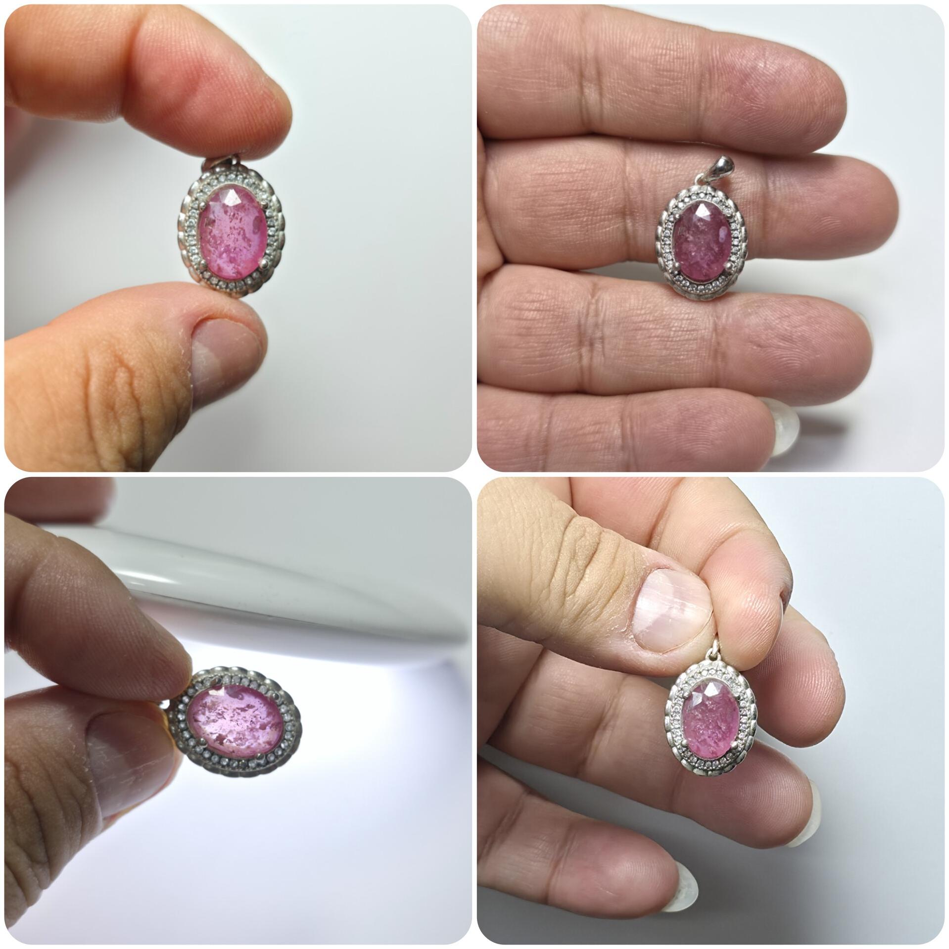 آویز نقره 925 پنبه ترک درجه یک با روکش رادیوم سنگ یاقوت سرخ کاملا پاک و شفاف برمه که فقط سنگش بالای 10.000.000 میلیون تومان ارزش دارد