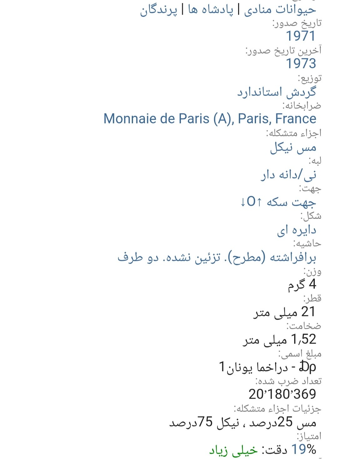 سکه 1 دراخما یونان نایاب1971 (3303))