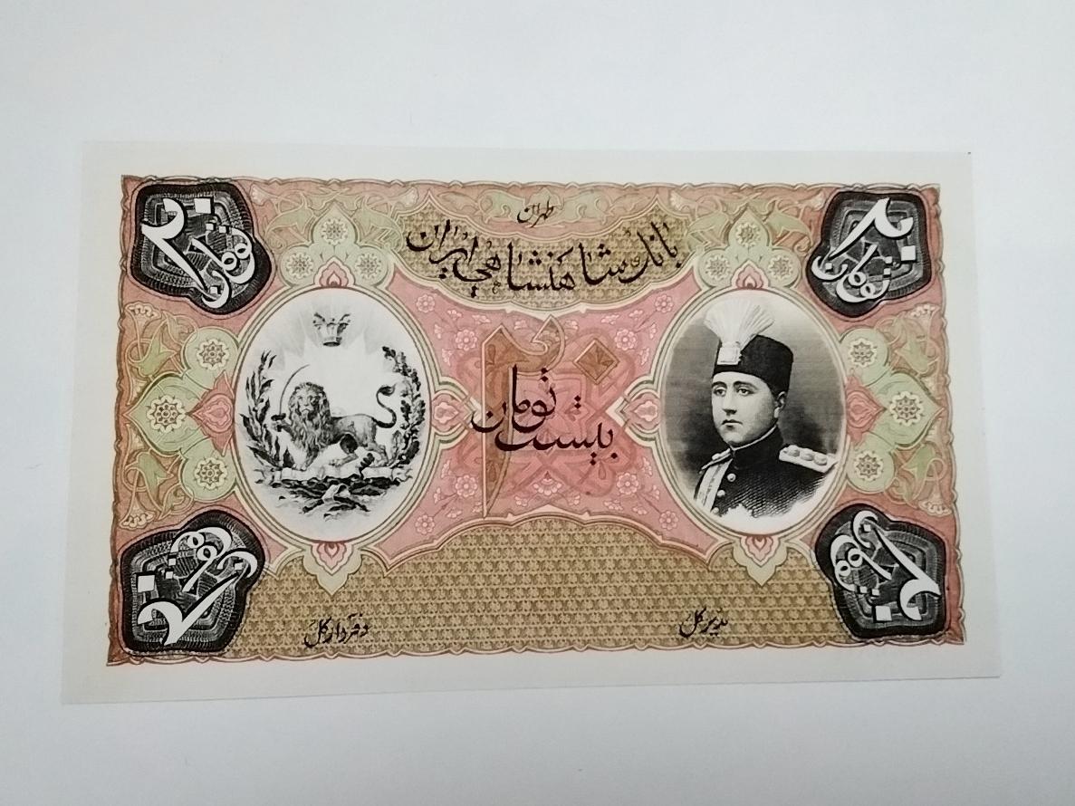 اسکناس فانتزی20تومان قاجارباتصویراحمدشاه تصویر