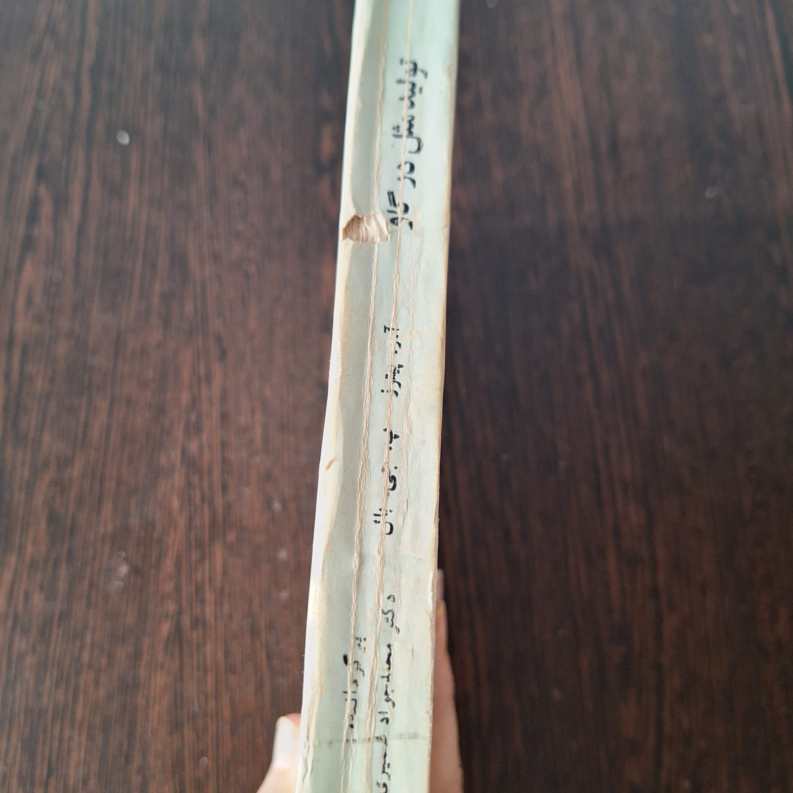 جلد کتاب فرسوده شده و در قسمت عطف پارگی نقطه ای دارد.
