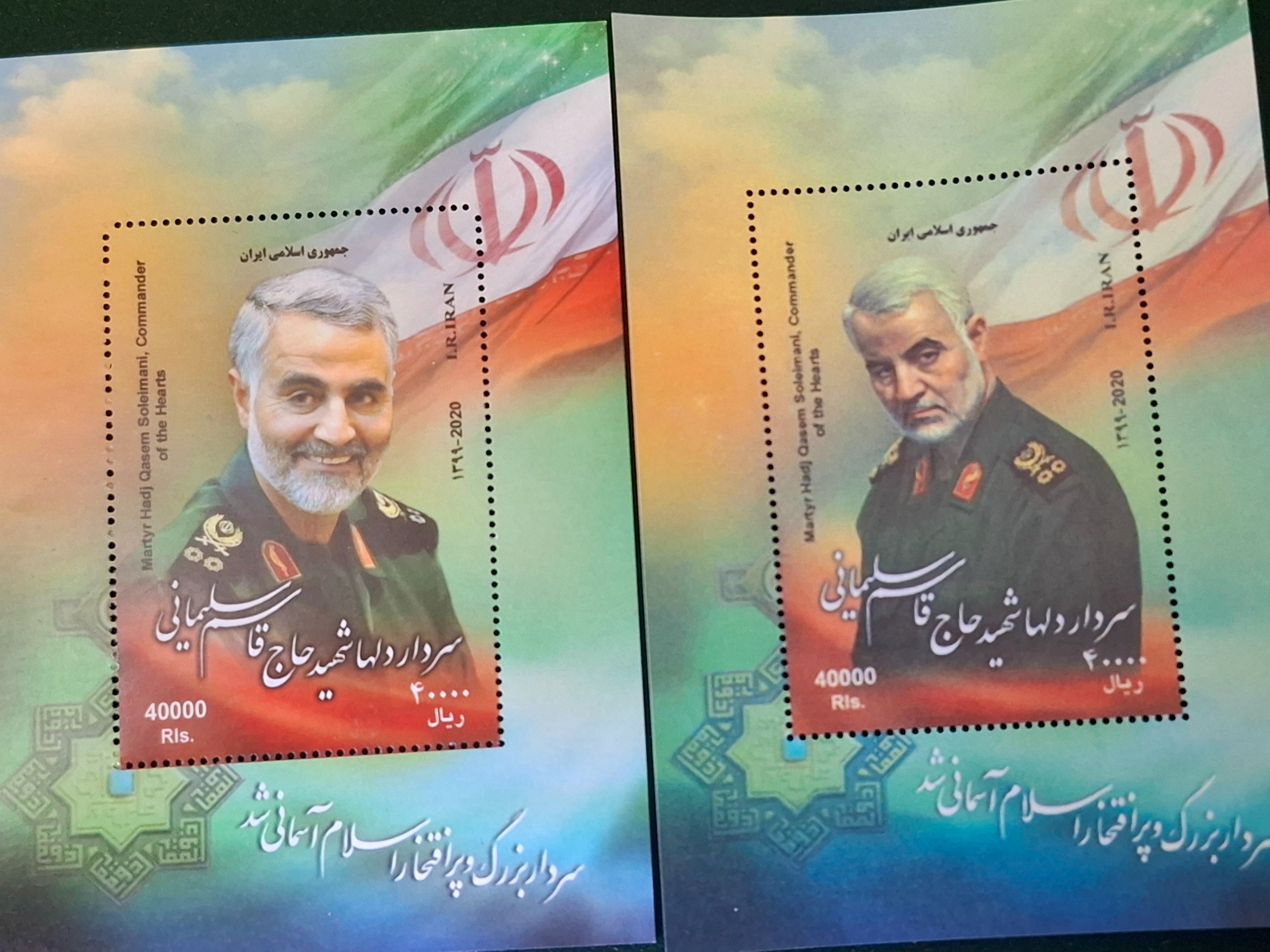 2 شیت تمبر معروف. کمیاب شهید با اخم وخندان کیفیت سوپر بانکی