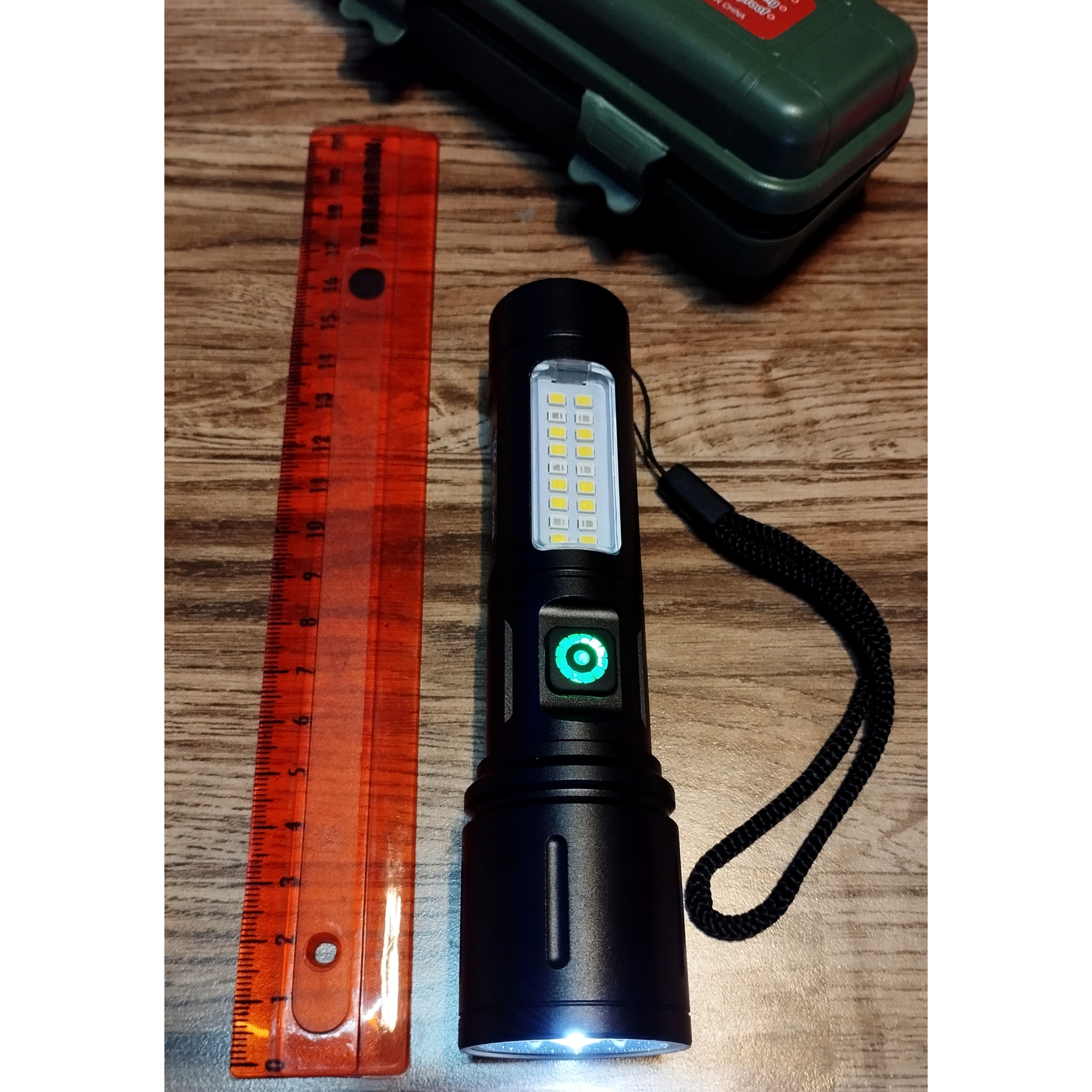 بسیار با کیفیت..باتری داخلی شارژی..دو لامپه با 6 حالت نوردهی..مستقیم سفید لیزری با تنظیم بزرگنمایی..بغل سفید و قرمز ثابت و چشمکزن..ورودی تایپC..بدنه فلزی..کلید با کیفیت..باکس BMC مقاوم و بند آویز