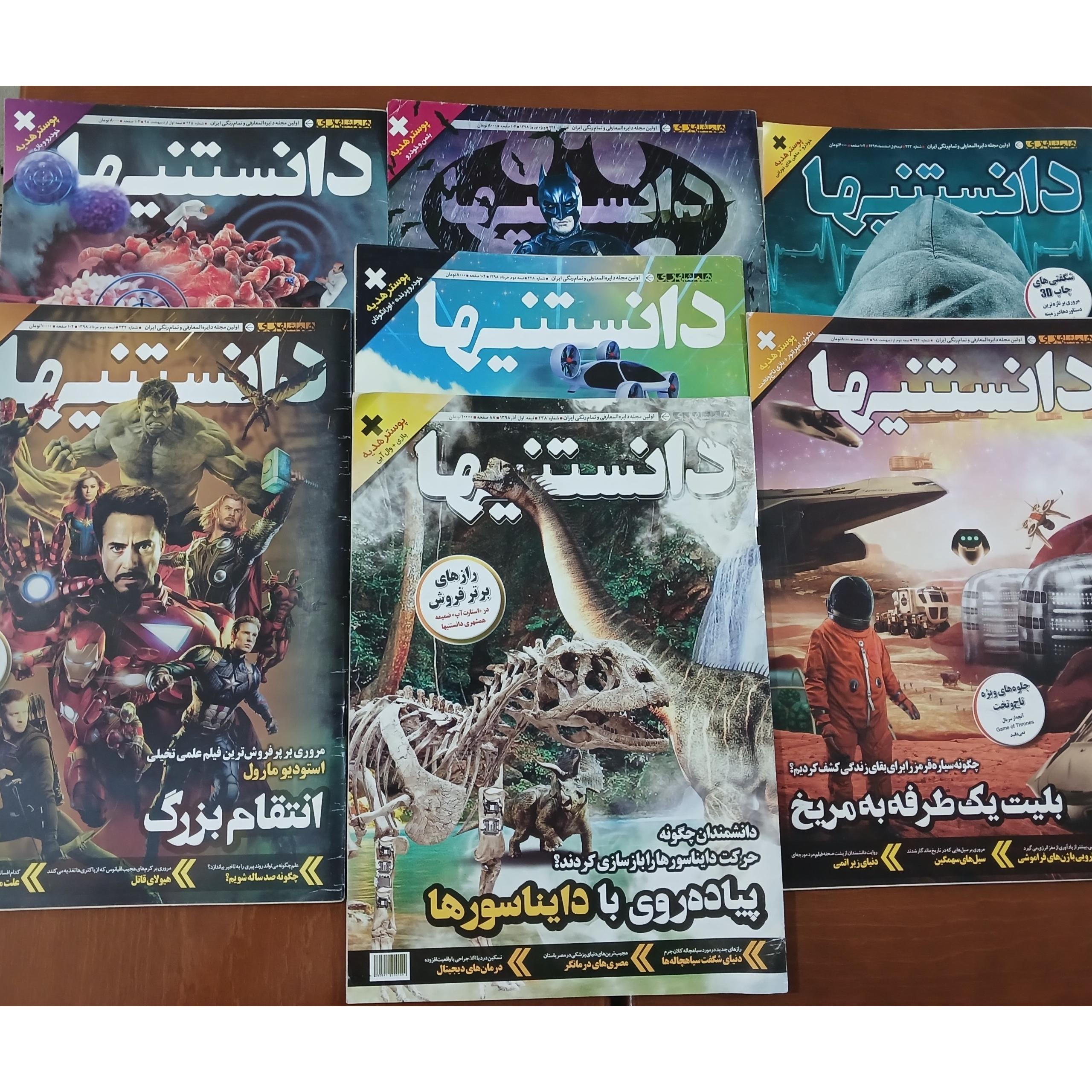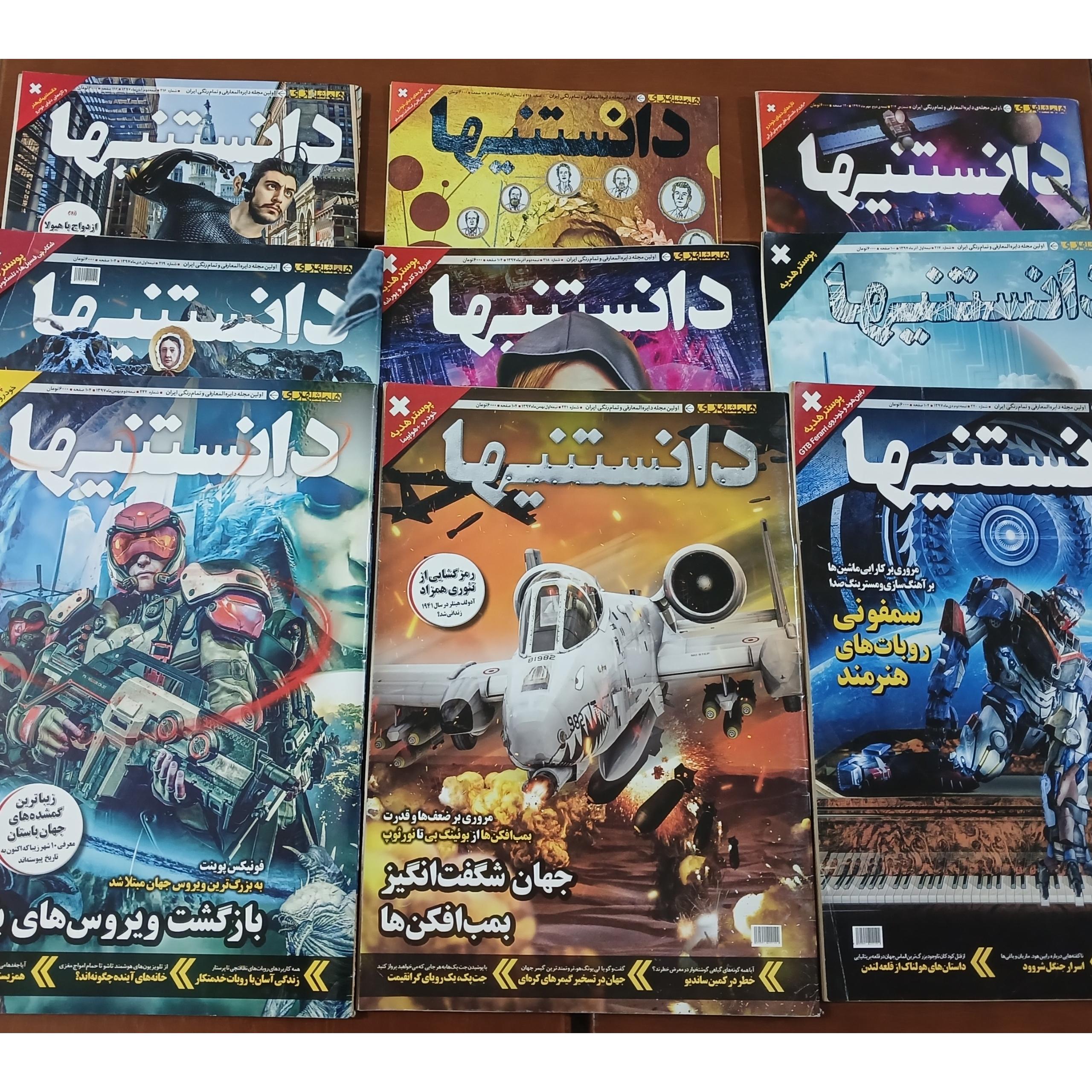 تعداد 15 عدد سری دانستنی ها همگی کاملا نو و همراه پوستر هایشان بدون نوشته و پارگی ، از شماره 214 تا 228 فقط شماره 227 موجود نیست و شماره 215 هم ناقصی دارد و بقیه شماره ها کامل و سالمن در کنار شماره 232 و 238