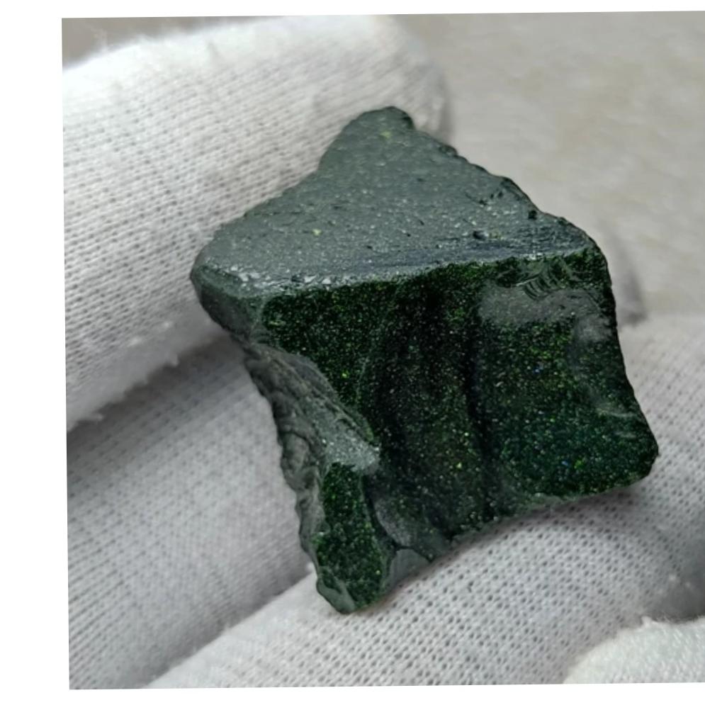 سنگ راف کمیاب دلربا سبز پرتلالو 18 گرمی زیبا و باکیفیت مناسب کلکسیون و تراش و ساخت جواهرات