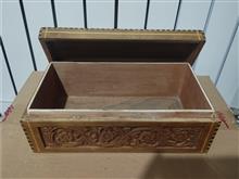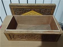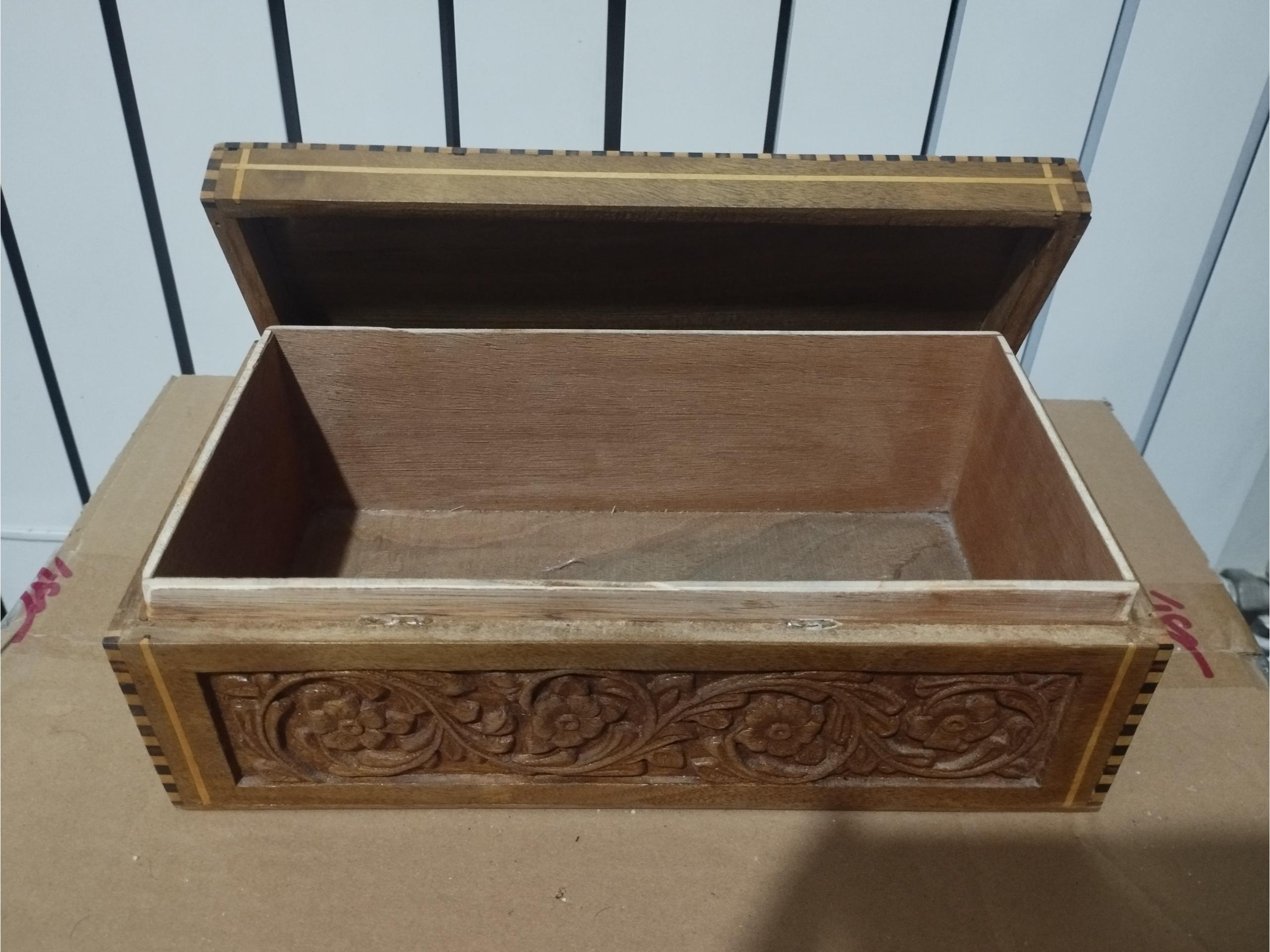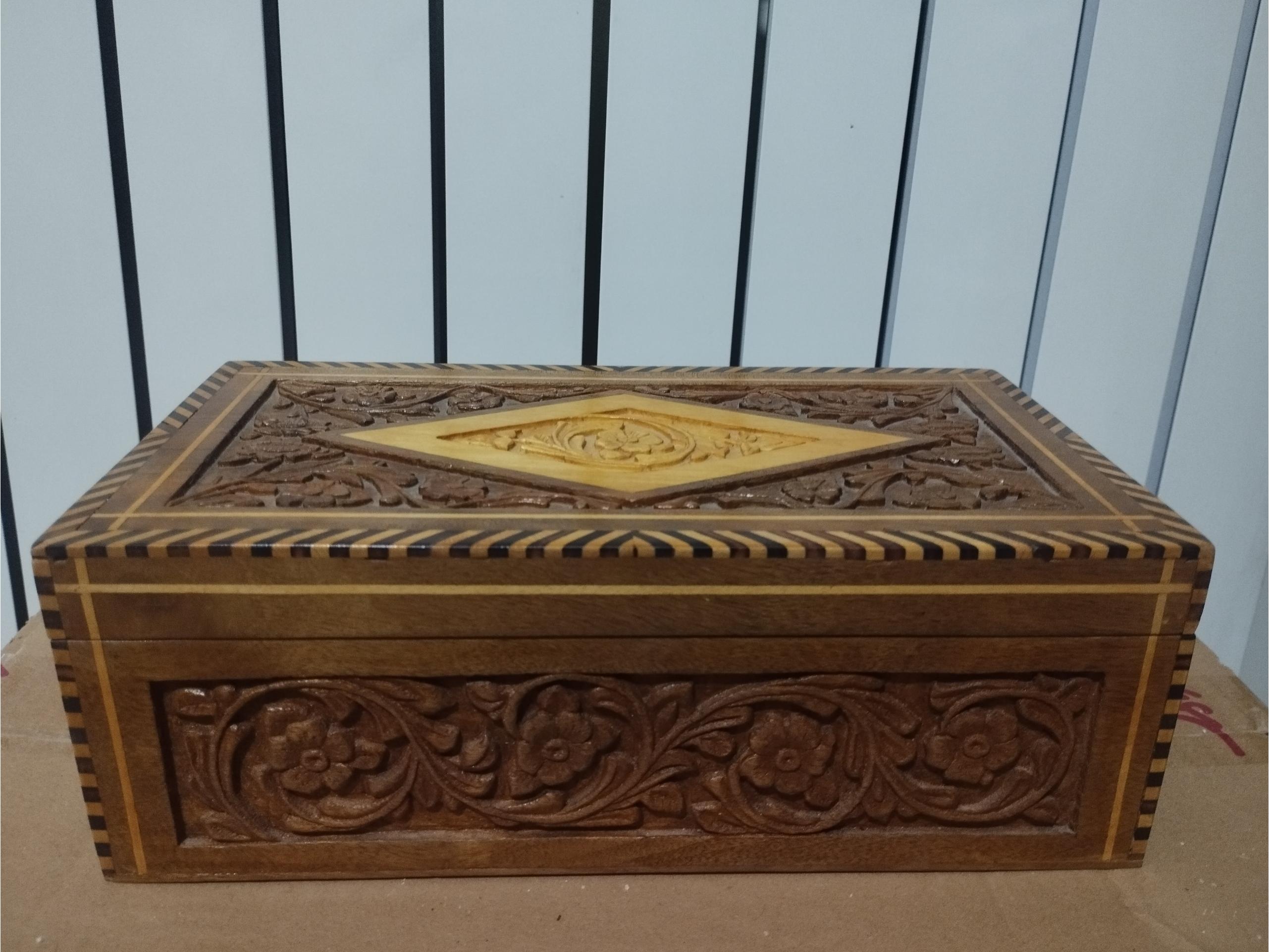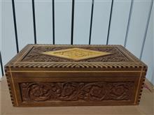 جعبه زیور آلات چوبی با طرح گل برجسته روی درب و جلوی جعبه