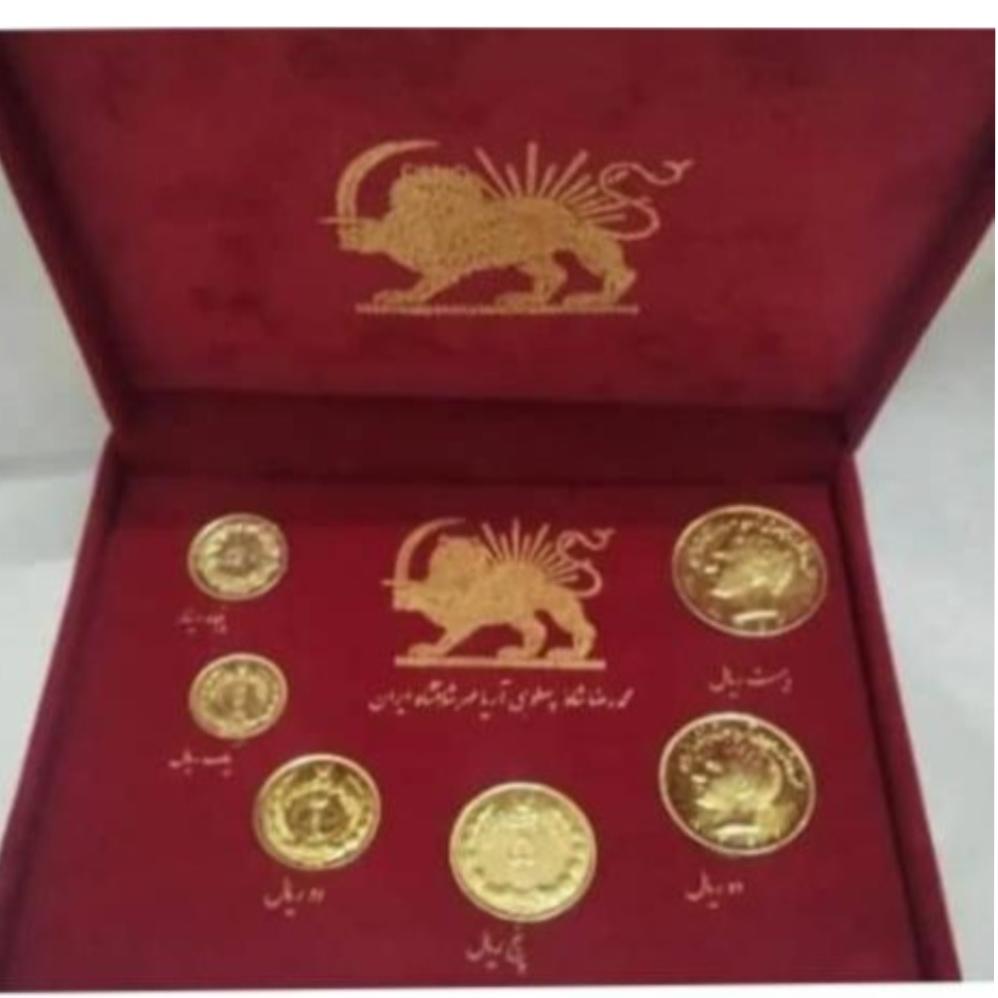 سکه های پهلوی روکش طلا در جعبه کلکسیونی توضیحات