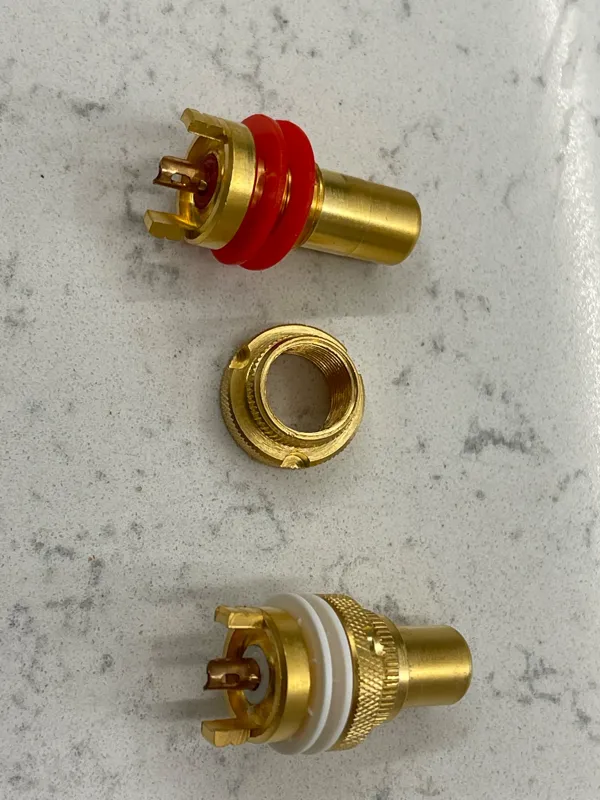 فیش rca جنس مرغوب روکش طلایی ده جفت موجود است مناسب سیستم های صوتی hi-fi و hi-end .