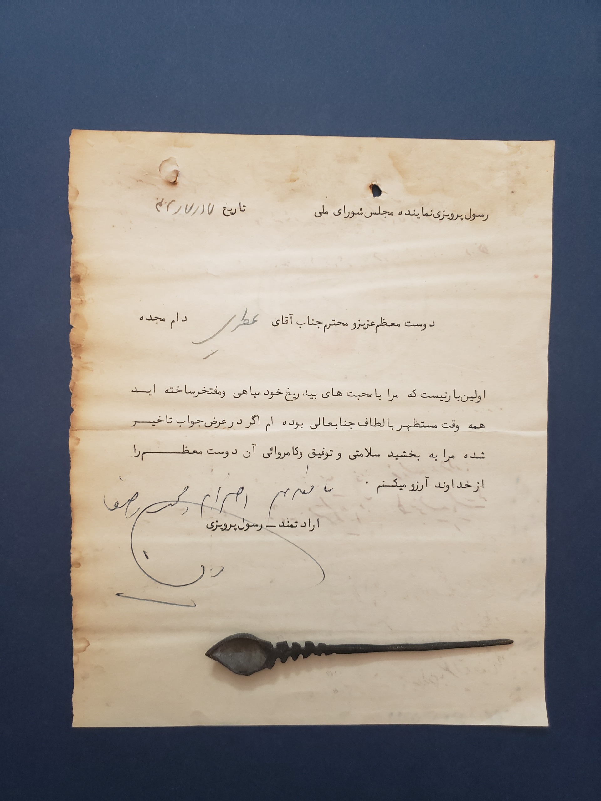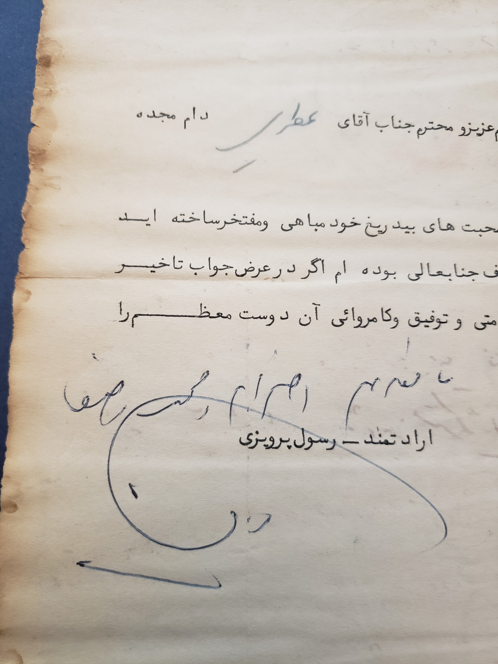 دستخط و امضا رسول پرویزی سیاستمدار و نویسنده و نماینده مجلس