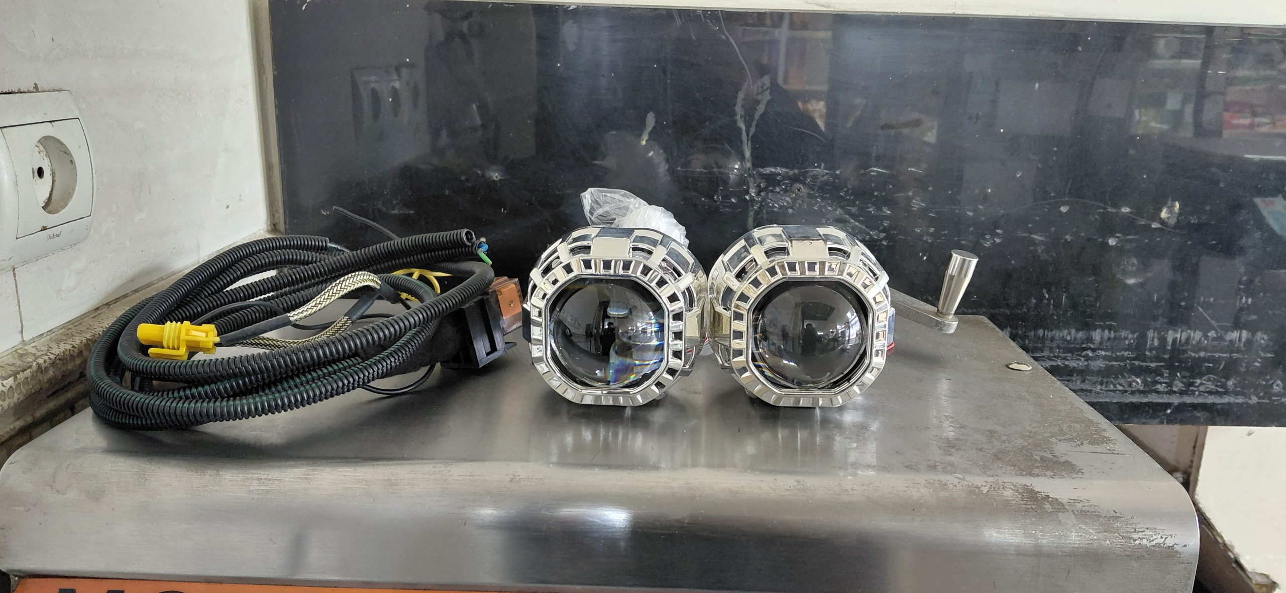 لنز چراغ خودرو 3 اینچ دارای خط کات متحرک نور بالا و پایین هم زنون میخوره هم هدلایت با یک دست کابل برای نصب
