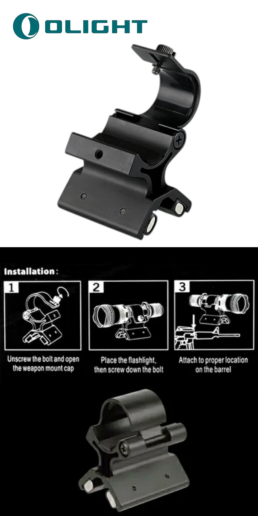 پایه چراغ قوه آهنربایی برند OLIGHT مدل x-wm02 مناسب جهت نصب انواع چراغ قوه با تیوب 1 اینچ بر روی لوله سلاح های بادی، گازی، نیترو پیستون، pcp، سلاح های شکاری و انواع شات گان ها به راحتی و در کمترین زمان بدون نیاز به باز و بست.