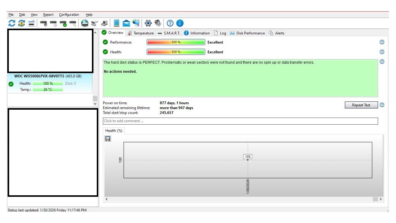 هارد WD آبی 2.5 اینچی لپ تاپی 1TB سلامت 100
