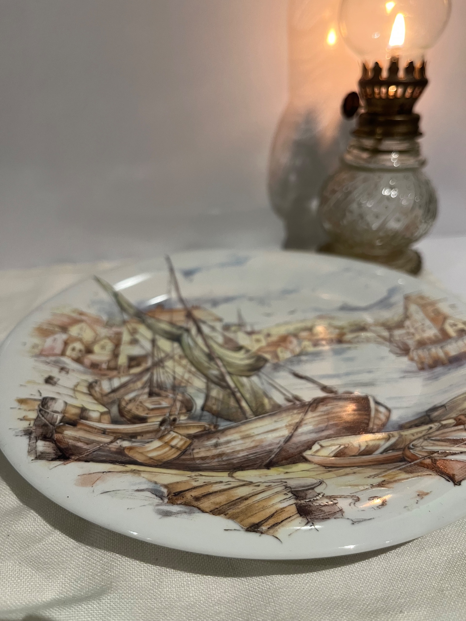 دیوارکوب قدیمی با منظره قایق قدیمی