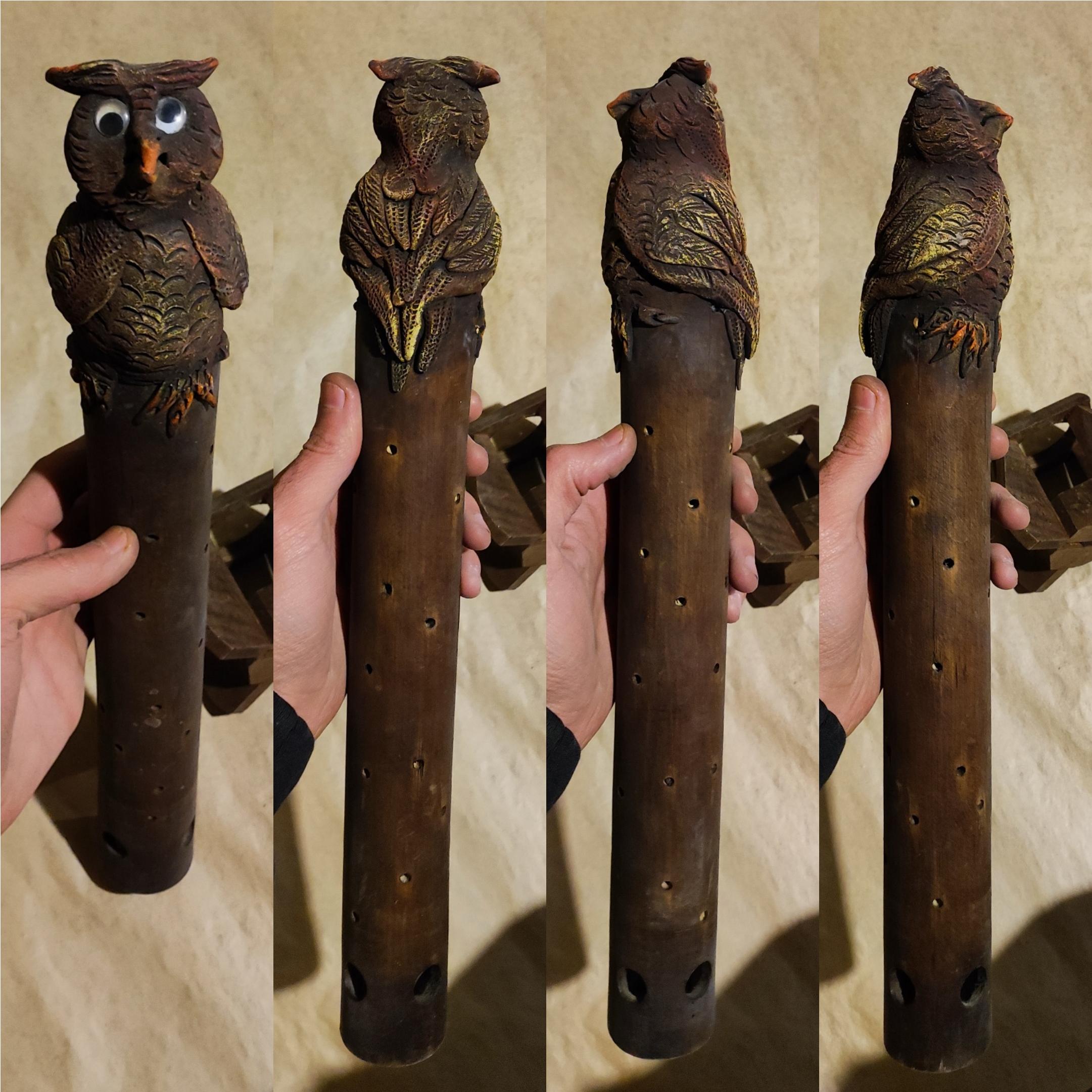 جا عودی بزرگ چوبی بامبو طرح جغد آنتیک کم یاب قدیمی