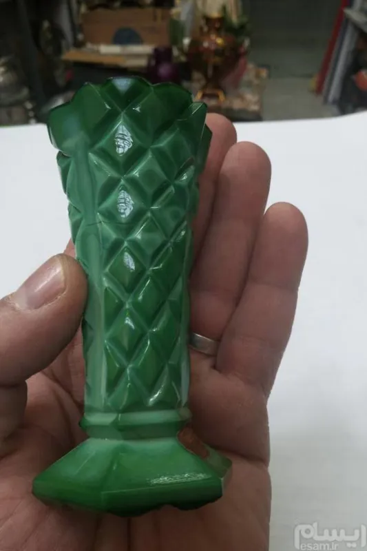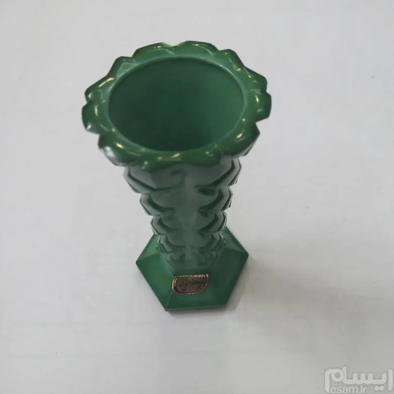 گلدان یشم به ارتفاع 10 سانت ساخت شرکت بوهیمیا چکسلواکی کاملا نونو مارکدار.