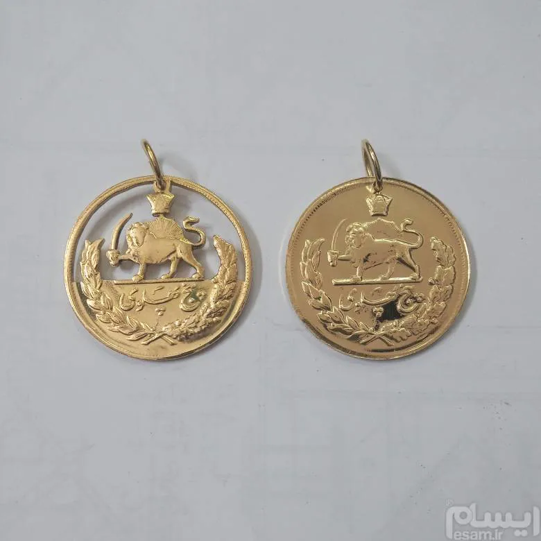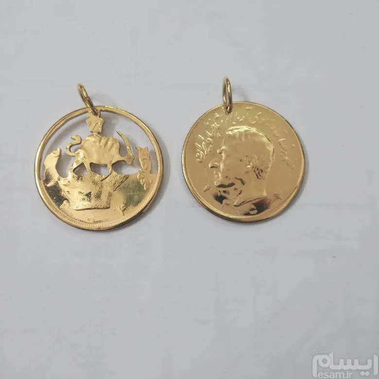 دو عدد سکه 5 پهلوی درشت به قطر 4 سانت .یکی اره کاری شده و دور شیر و شمشیر در اومده. و اون یکی فقط آویزه مطابق عکس فروش بصورت یکجا.