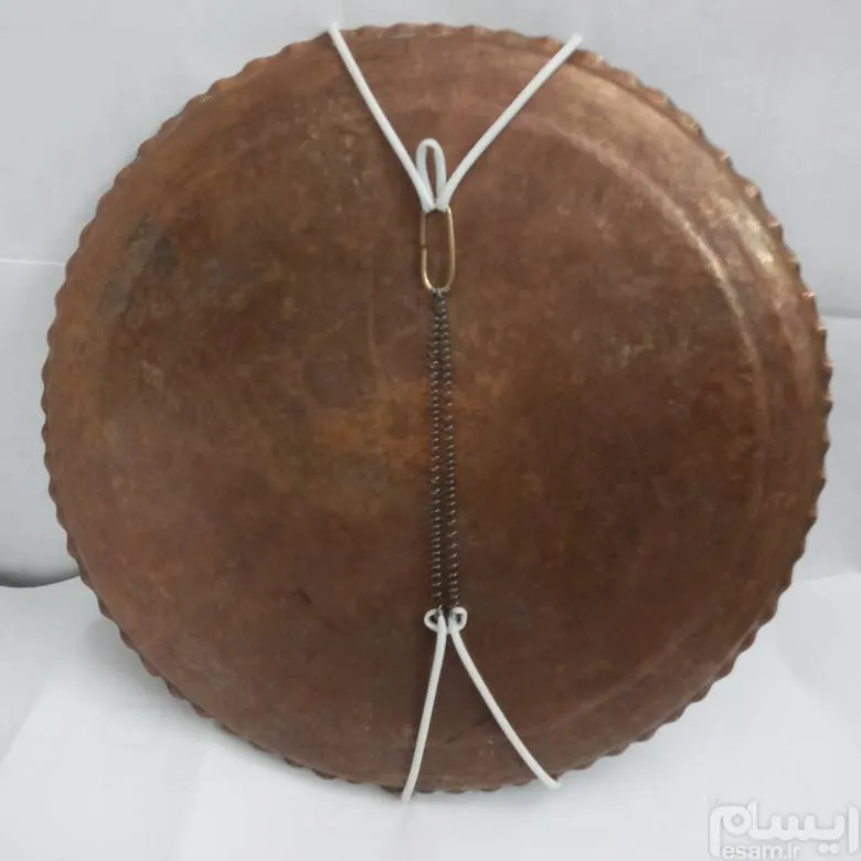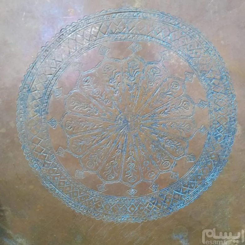 مجمع مسی قلمکاری شده با نقش اسلیمی دوره صفویه و لبه های سینی کنگره دار به قطر32 سانت .
