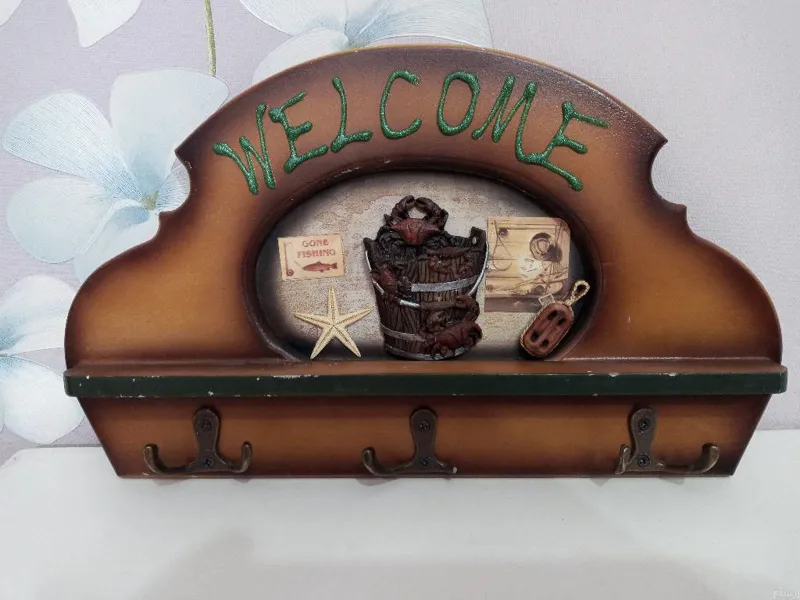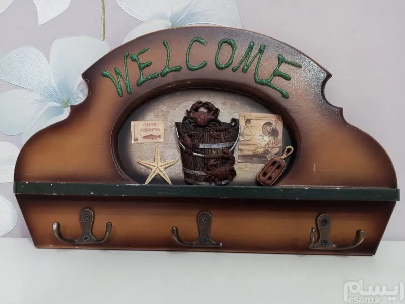 جا کلیدی چوبی به ابعاد32×20 داری 3تا قلاب دوتای برای کلید که یکی قلابها شکسته.