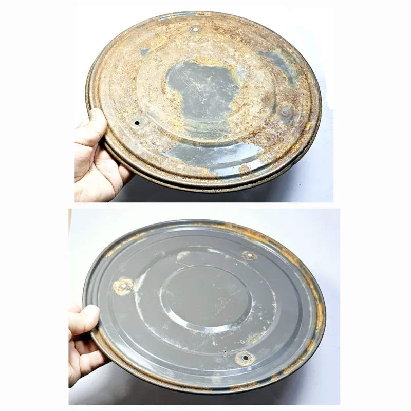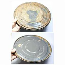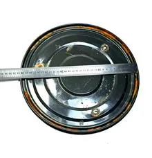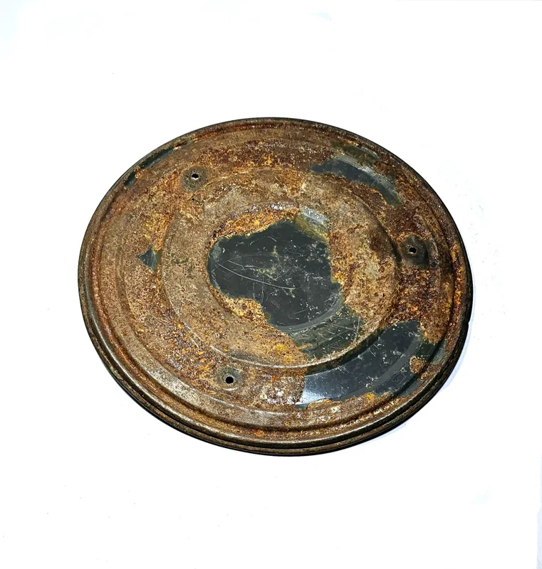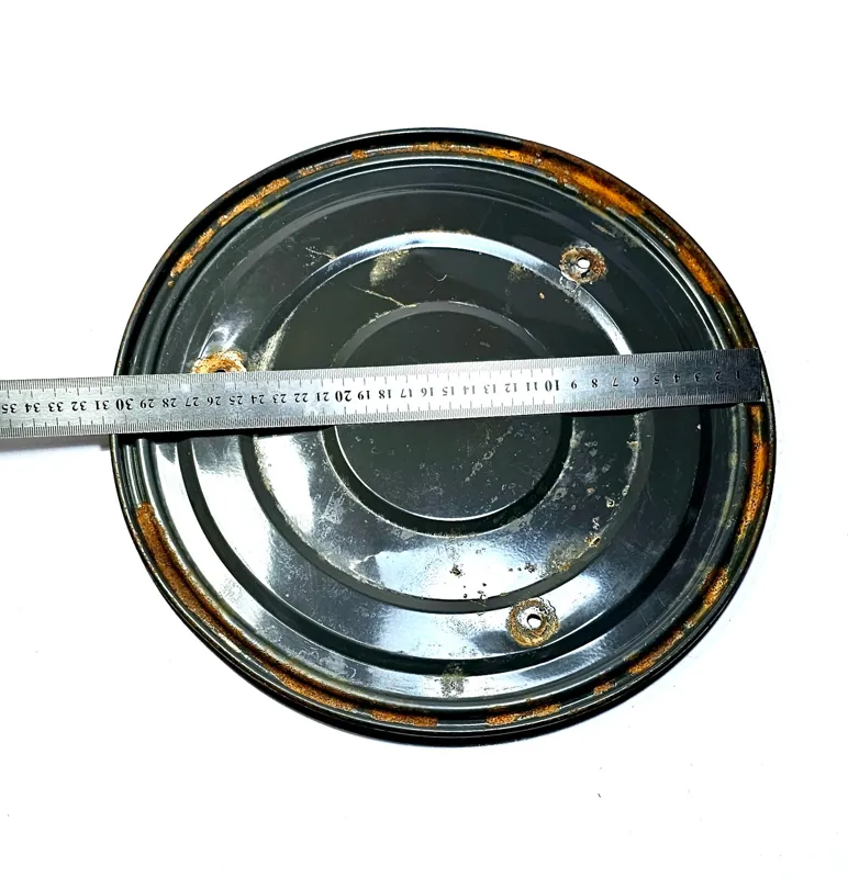 سینی اصلی زیر بخاری نفتی فوجیکا ساخت کشور ژاپن ، اصلی و قدیمی ، به علت قدمت دارای خط و خش و زنگار و سوراخ های ریز میباشد که در تصاویر مشخص است ، به همین علت معیوب ثبت شده است