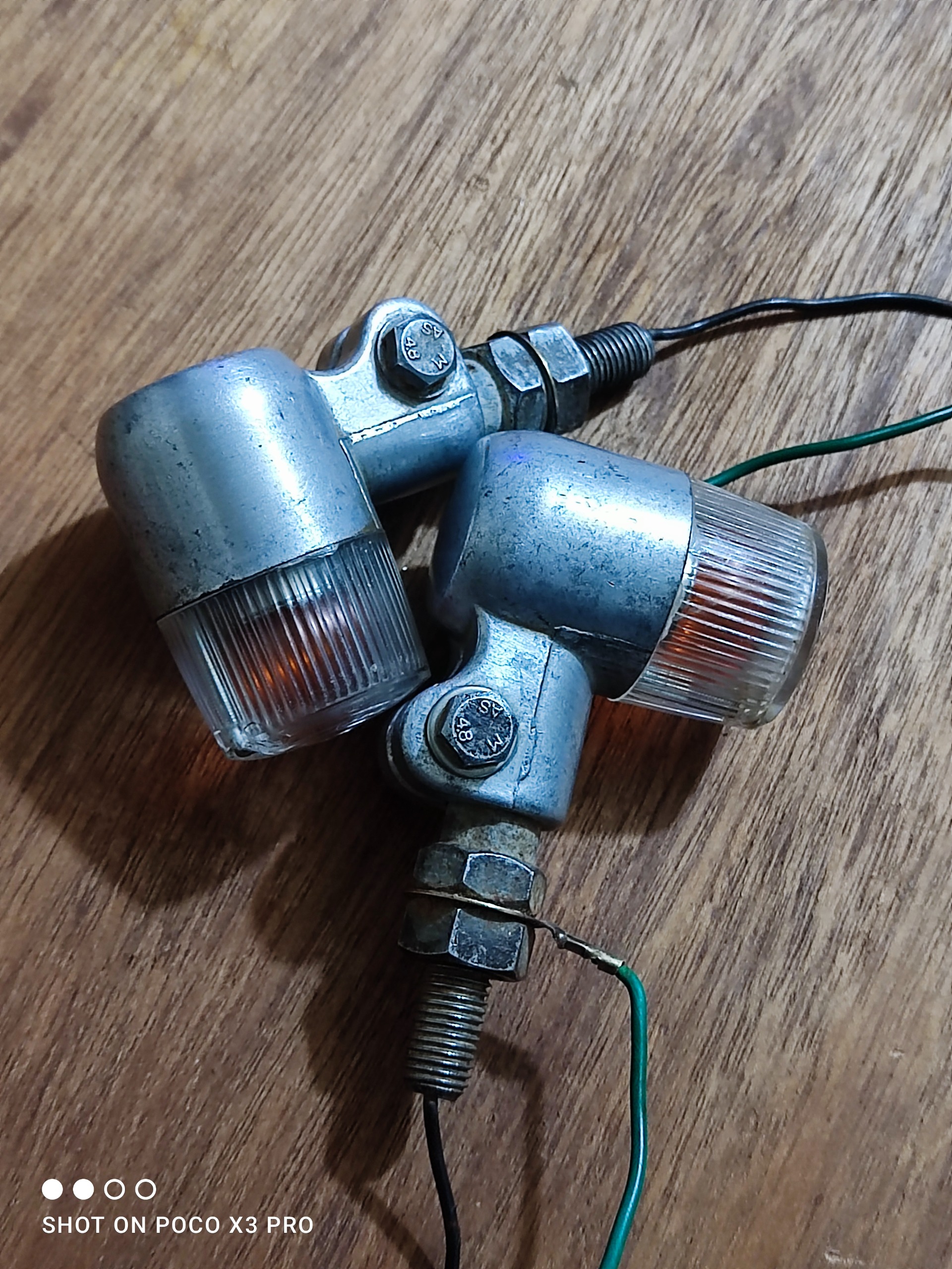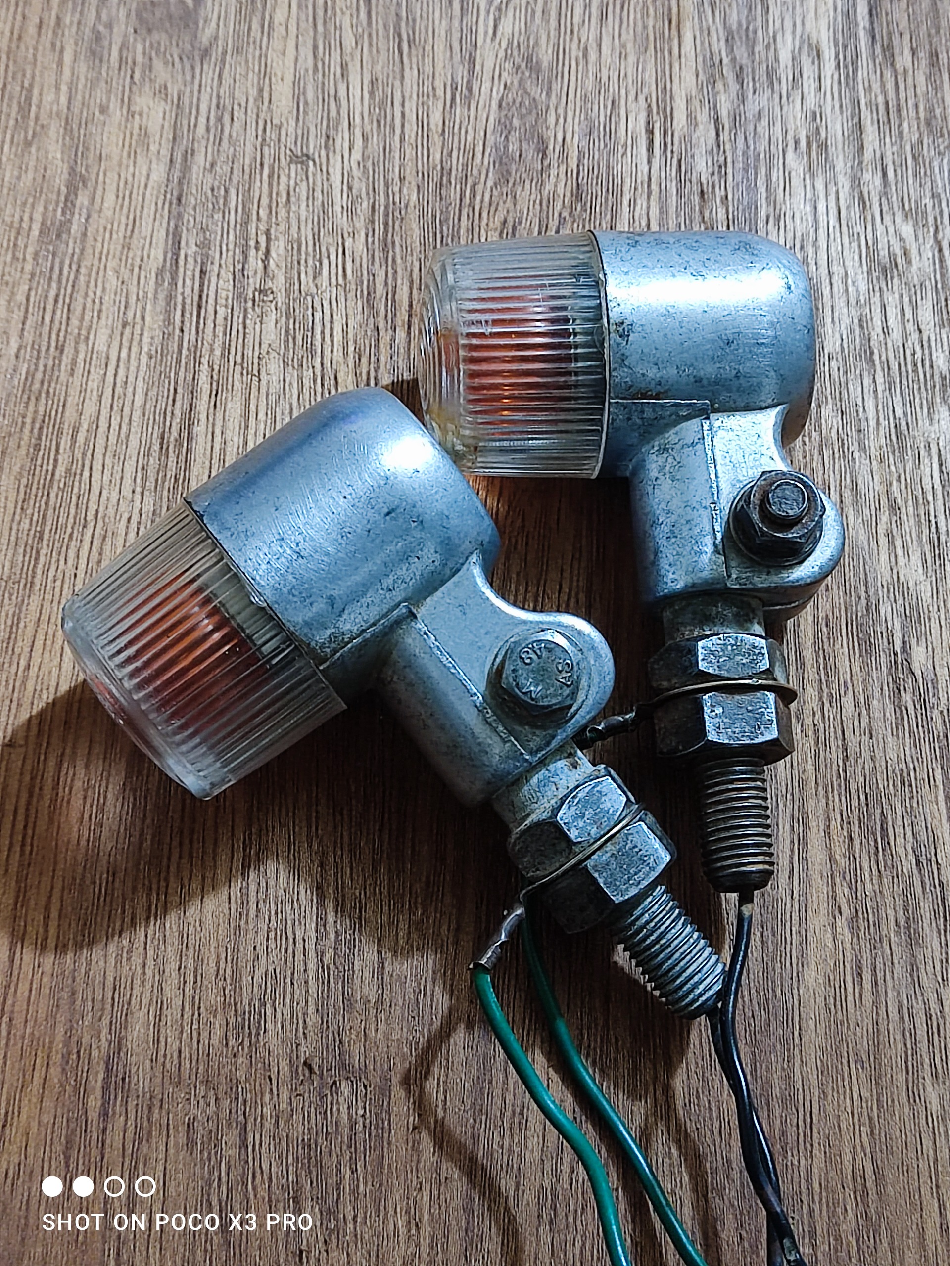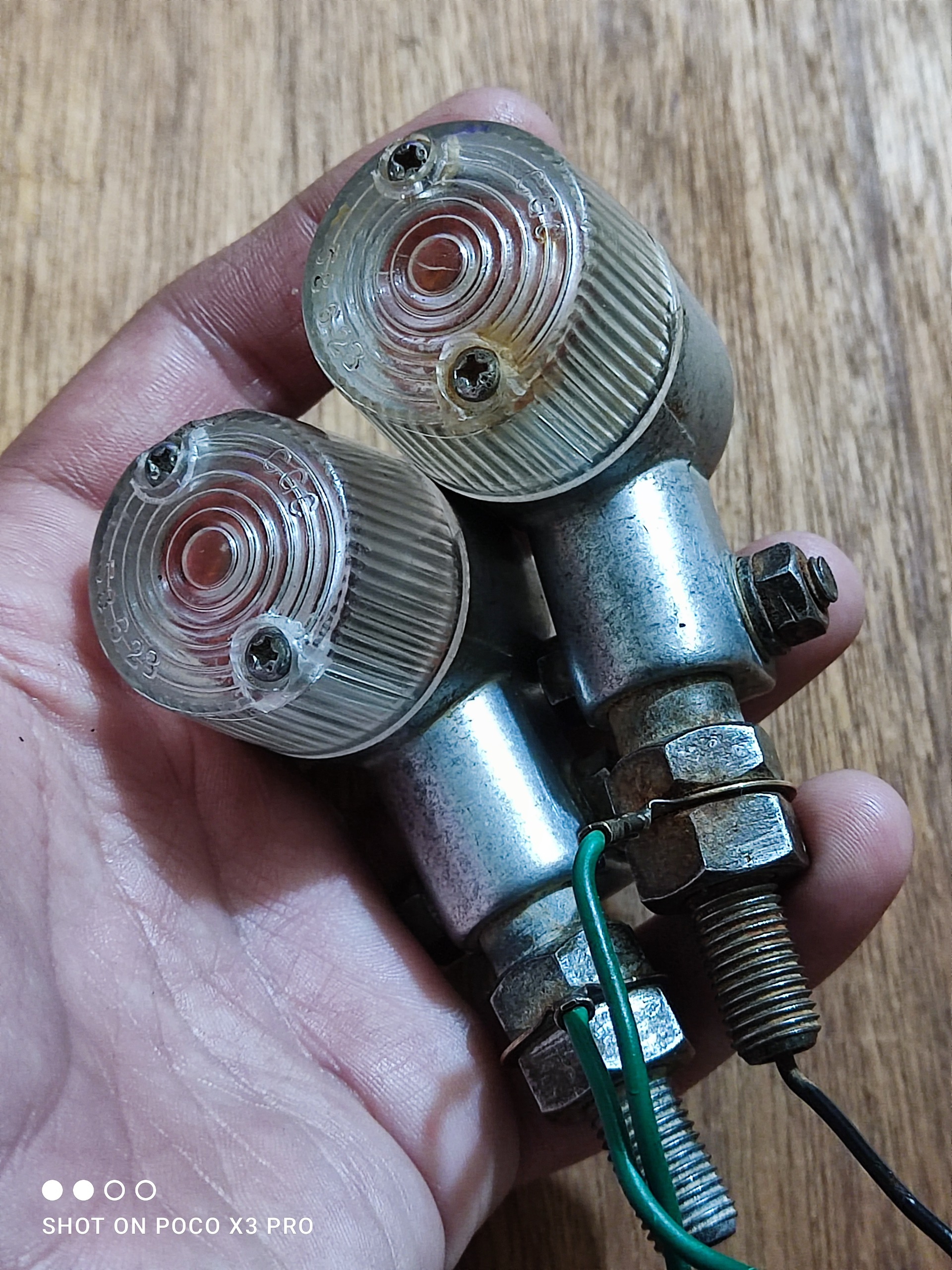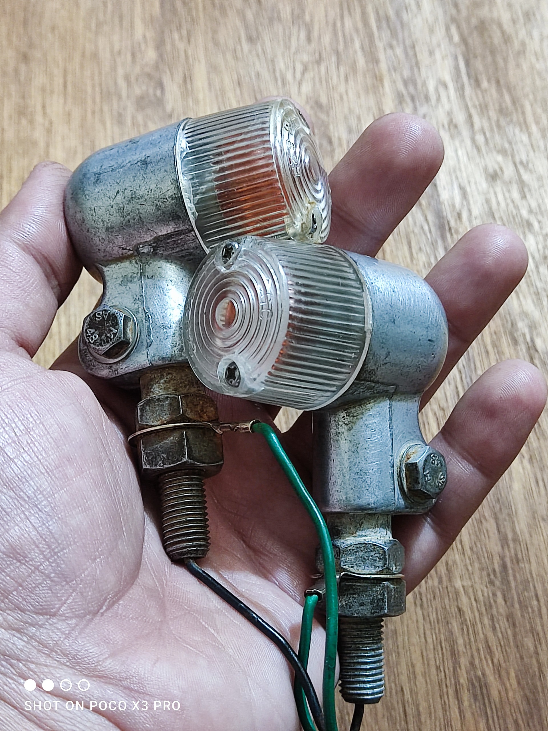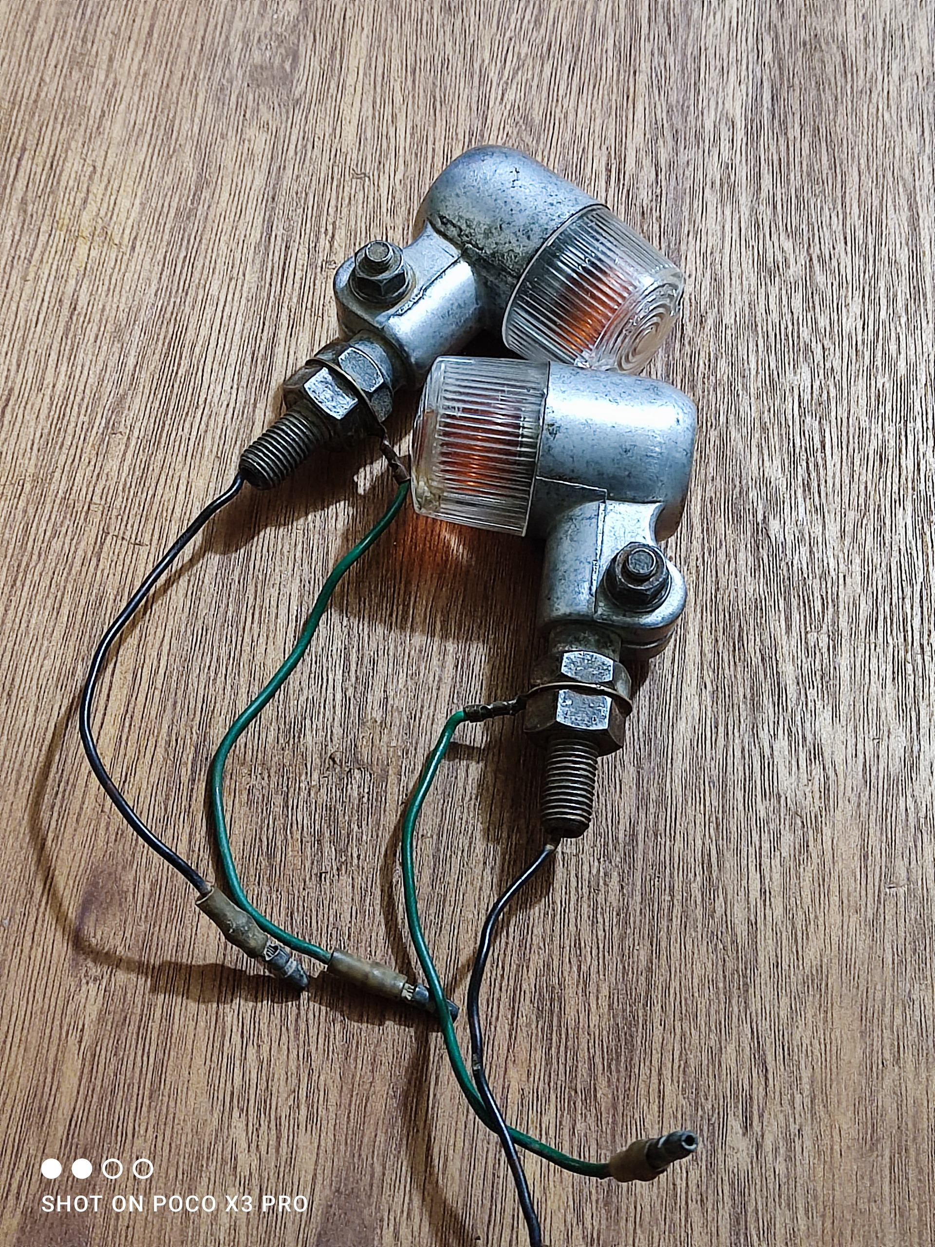 یک جفت چراغ راهنمای قدیمی ژاپنی اصلی مطابق تصاویر این دو عدد چراغ راهنما مربوط به موتورسیکلت قدیمی کراس هست اصلی لامپ داخلش حتی فابریکه قرمز رنگ همه چیزش اصلی خودشه سیم فیش پیچ مهره واشر همه چی فابریک کارخونه هست سالم و تمیز و بکر قیمت برای جفتشه