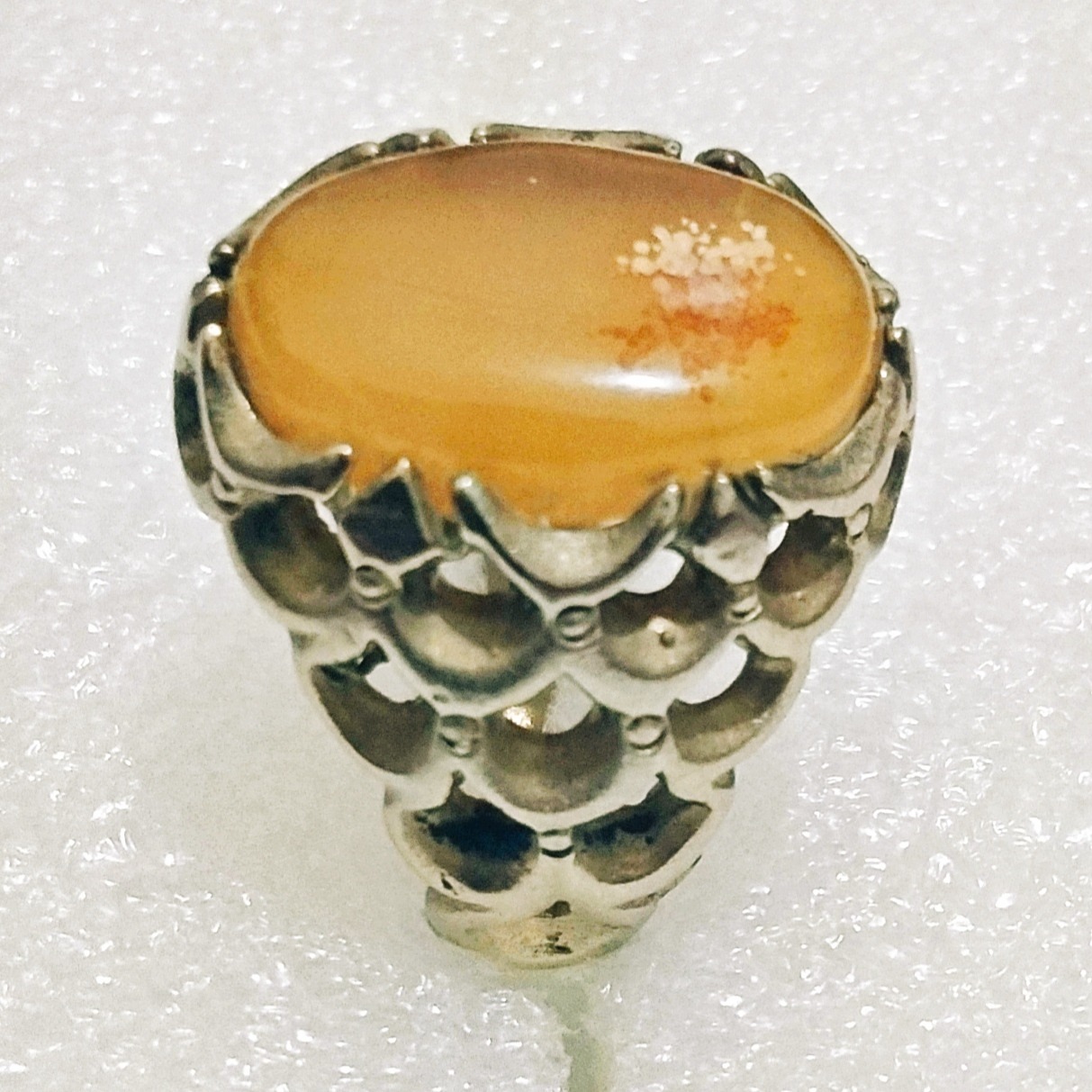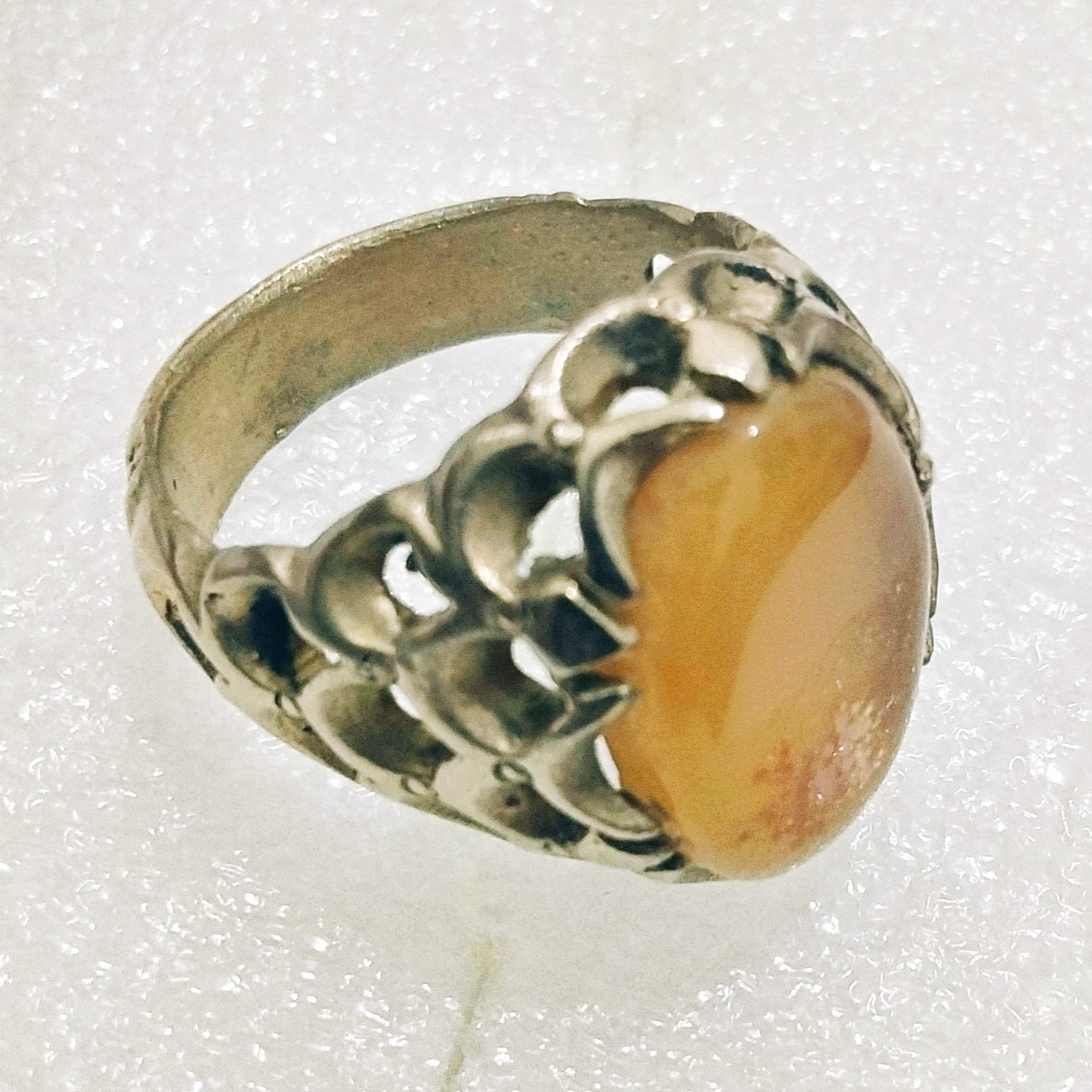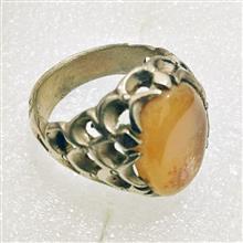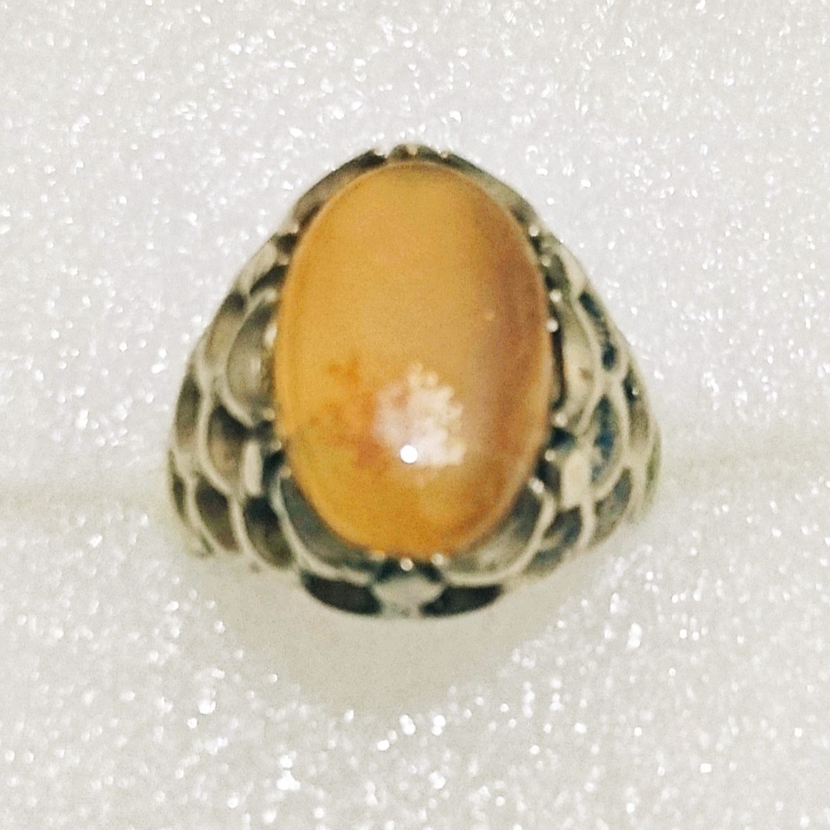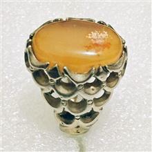 انگشتر عالی عقیق زرد برفی با رکاب پولک درشت