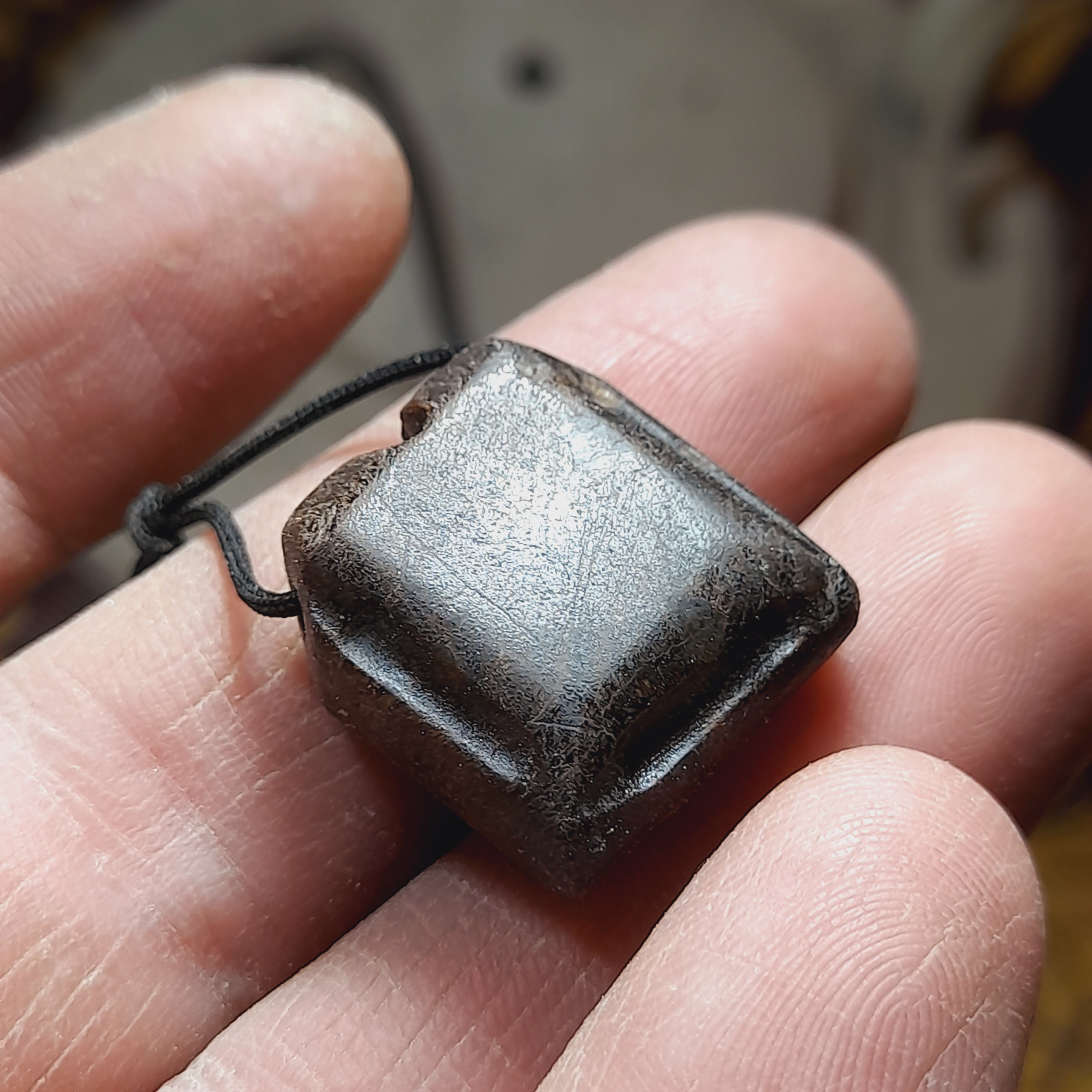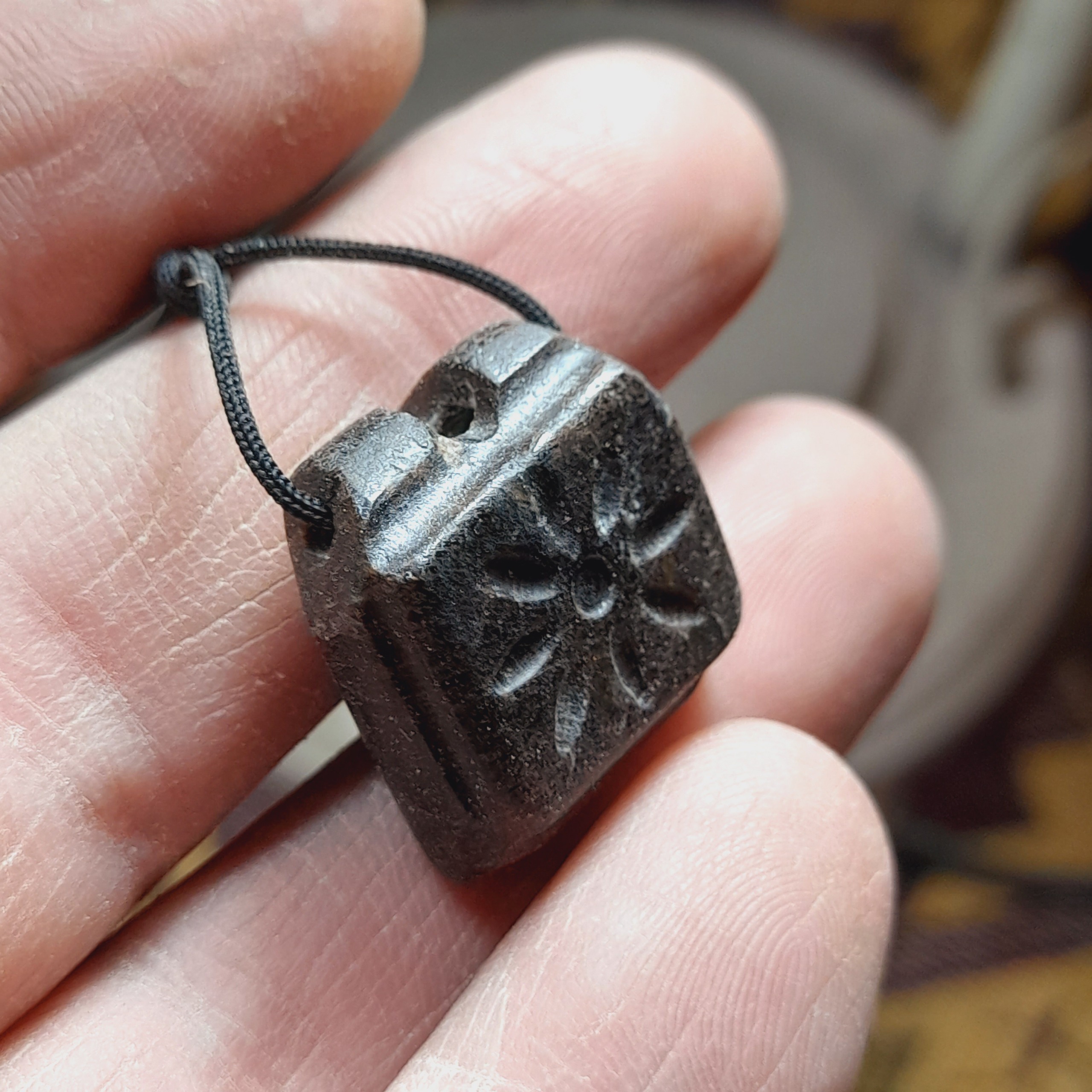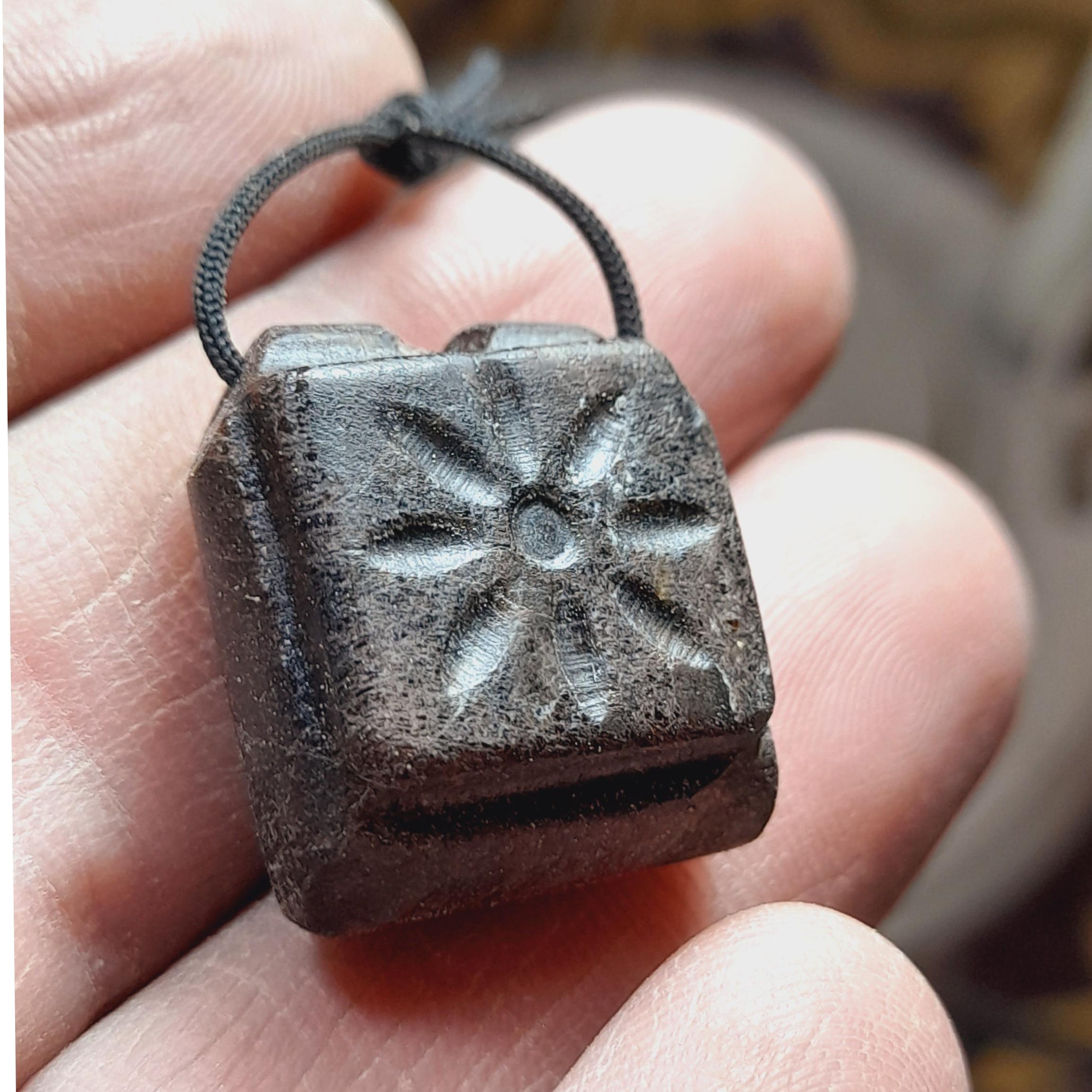 مهره آویزی گردنی نشاندار از سوراخ بالا داخل سنگ خالی هست ممکنه جای دعا بوده