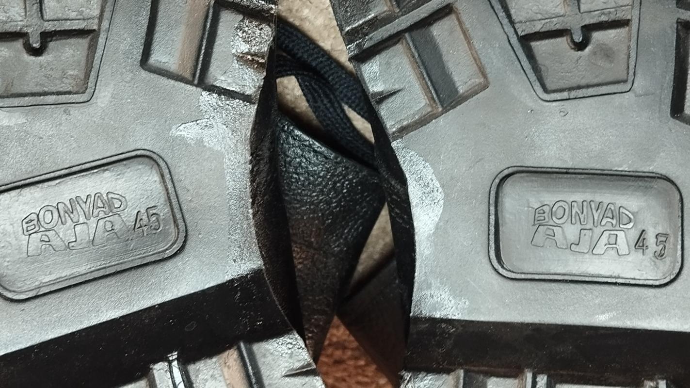 پوتین سایز 45 بنیاد آجا ( این نوع پوتین رو ارتش برای کادرهای خودش میزنه و مرغوب تر و سبک تر از پوتین های دیگه هستش)