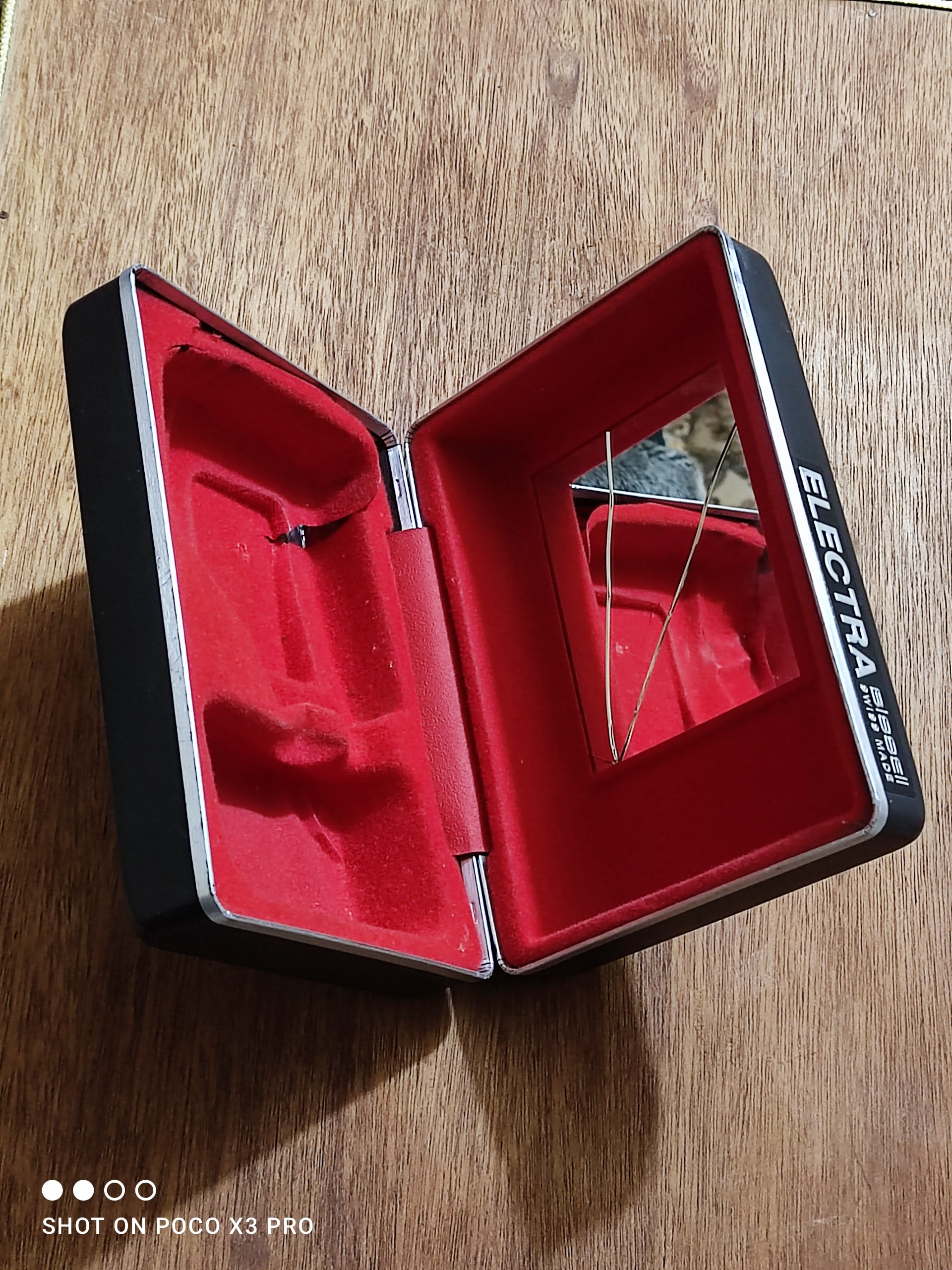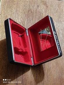 یک عدد جعبه سوئیسی قدیمی مطابق تصاویر این جعبه احتمالا مربوط به ریش تراش سه موتوره قدیمی بوده بسیار زیبا داخل جعبه آینه هم کار شده جنس خود جعبه از فلزه روکش داره کناره های جعبه یا همون قاب دورش از آلومنیوم هست داخلشم که توی تصاویر مشخصه
