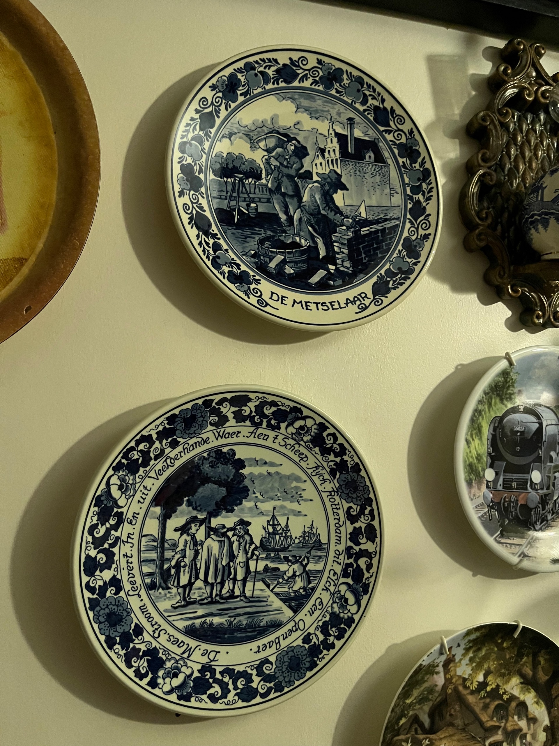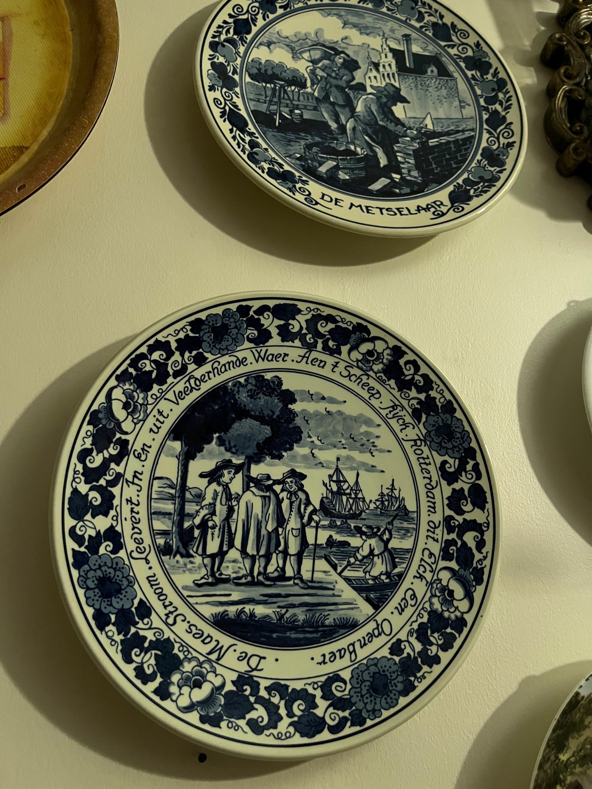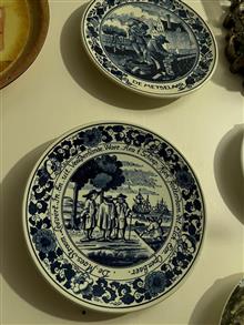 دیوارکوب قدیمی دلف دست ساز و ساخت هلند با مارک حک شده به صورت جفت و دو طرح متفاوت و زیبا و کمیاب با قطر 25 سانتی.