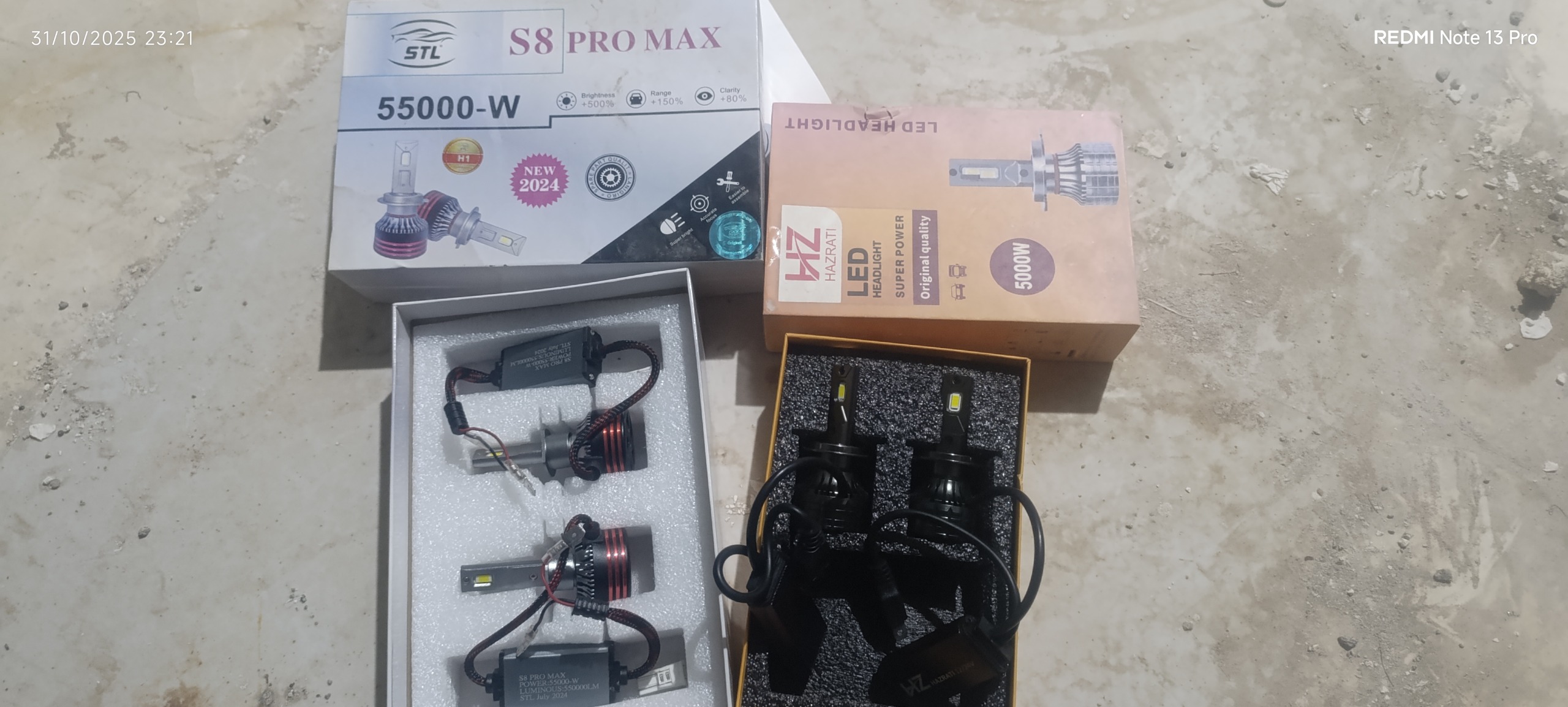 سلام دوجفت هدلایت فقط دو روز روی ماشینم بوده پلیس گیر میداد باز کردم یکیش پایه H7مارکش s8pro maxو یکیشH1ومارکHZ توجه کنیداین هدلایتها کیفیت و نور دهی بسیار بالاست و ازین آشغالای توی بازار نیست خودت جفتش خریدم 8ملیون ارسال رایگان