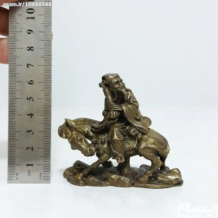 مجسمه پیرمرد روی اسب برنزی کار قدیمی ارتفاع 7 سانت طول 7/5 سانت وزن 290گرم ساخت چین
