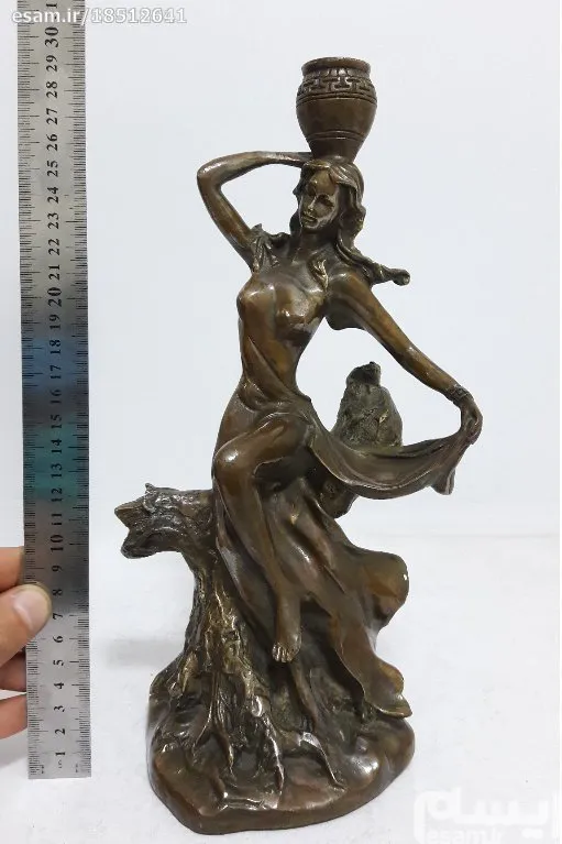 مجسمه برنزی دختر کوزه به سر با ظرافت ارتفاع 30 سانت طول 16 سانت