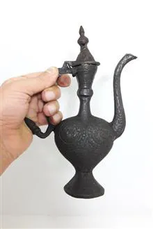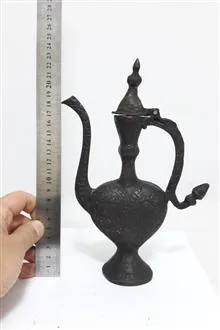 گلاب پاش نقش برجسته برنجی ( طرح قدیم،کهنه شده) ارتفاع 22/5 سانت طول 16/5 سانت عرض 6 سانت وزن 820 گرم ساخت ایران