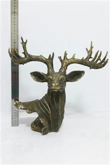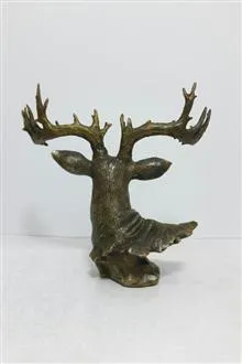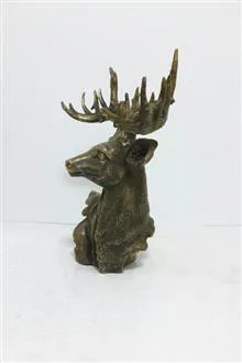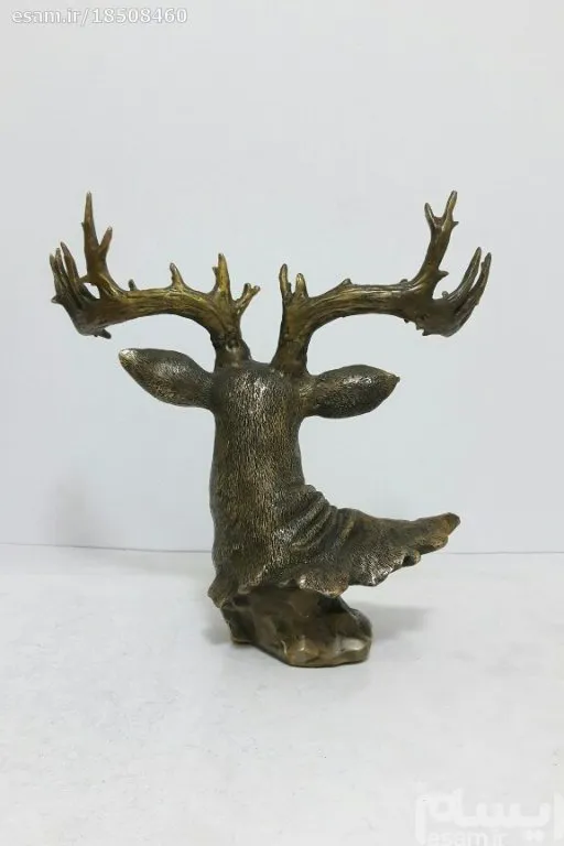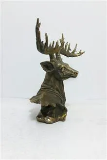 مجسمه سر گوزن برنزی کار با ظرافت ارتفاع 32/5 سانت طول 32/5 سانت نوک یکی از شاخ های گوزن شکستگی جزیی دارد