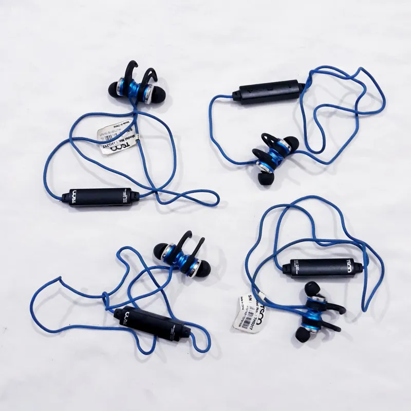 طبق 5 عکس ارائه شده 4 عدد هندزفری بلوتوث تسکو مدل TH5317 روشن نشدن نو خریده بودم مقداری فروختم فقط تعداد کمی مونده هندزفریهای خوبی هستن صدای تماس ، موسیقی ، راهنمای صوتی شاید باتریاشون خراب شده ، به هرحال به عنوان معیوب فروخته میشود . هرچهار عدد ارسال میشود