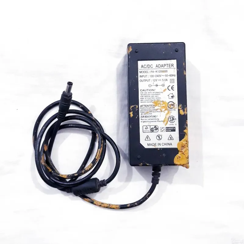آداپتور سویچینگ 12 ولت 5.0A  سالم فقط کمی رنگ خورده بهش باتینر تمیز میشه ، شاید خودم تمیزش کردم .