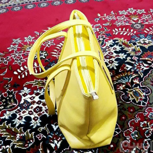 کیف دوم لیمویی یازرد رنگ دستی ، دارای یک محفظه بزرگ ودو محفظه کوچک برای گوشی ولوازم دیگه ، جنس خوبی داره فقط دوسه بار استفاده شده وتمیز نگه داشته شده